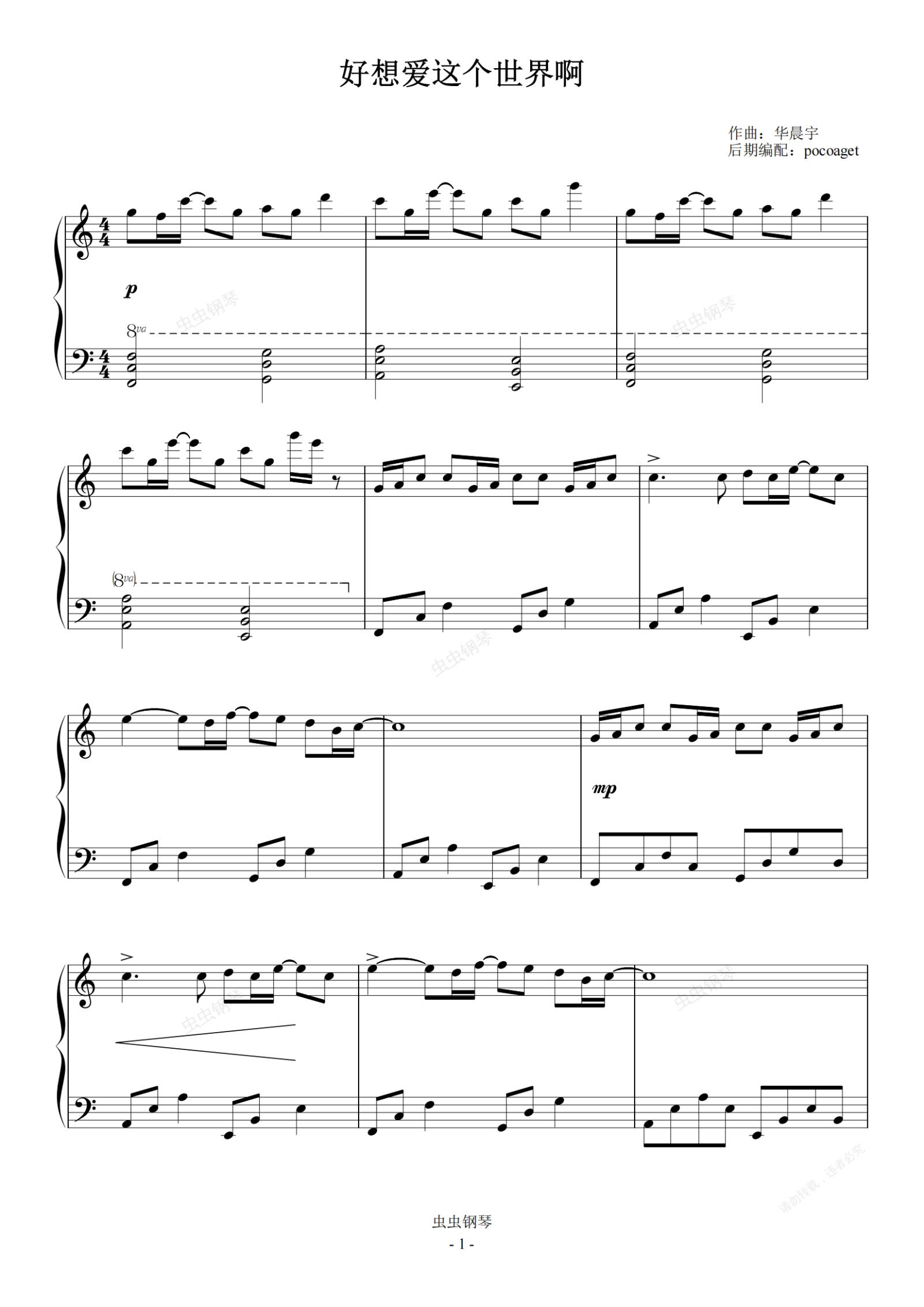钢琴谱:《好想爱这个世界啊》初学者简单完美版