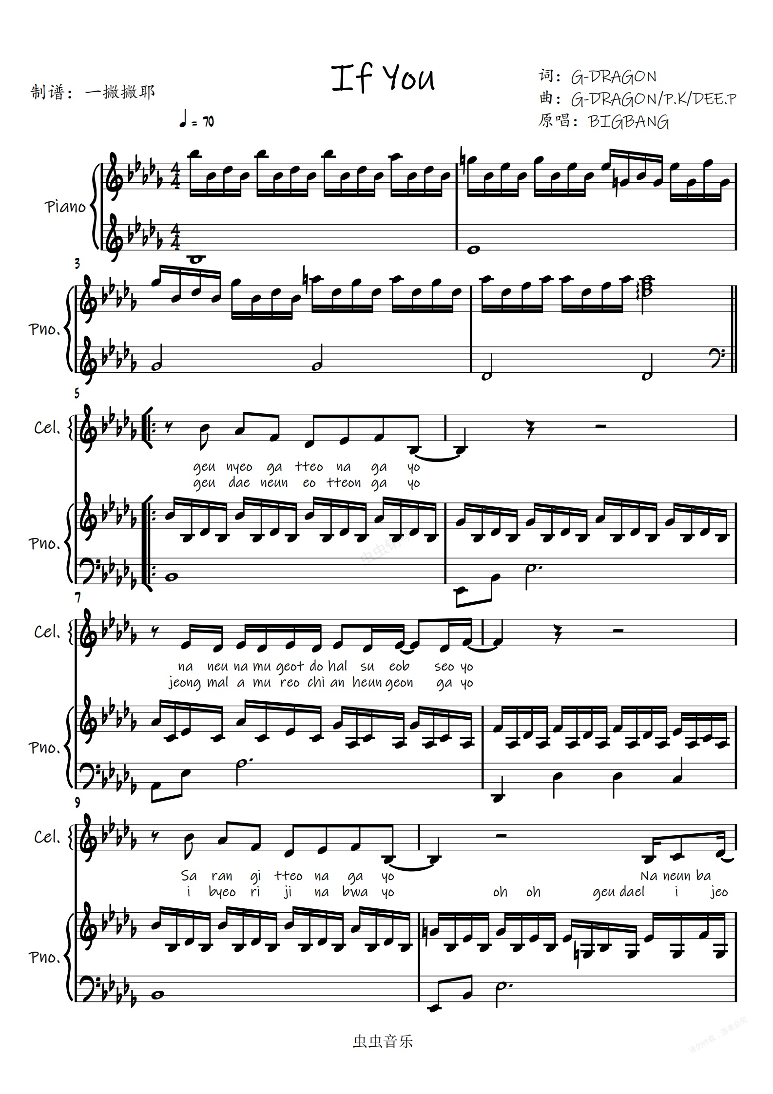 钢琴谱:If You【弹唱谱(附罗马音歌词)】BIGBANG「一撇撇耶」