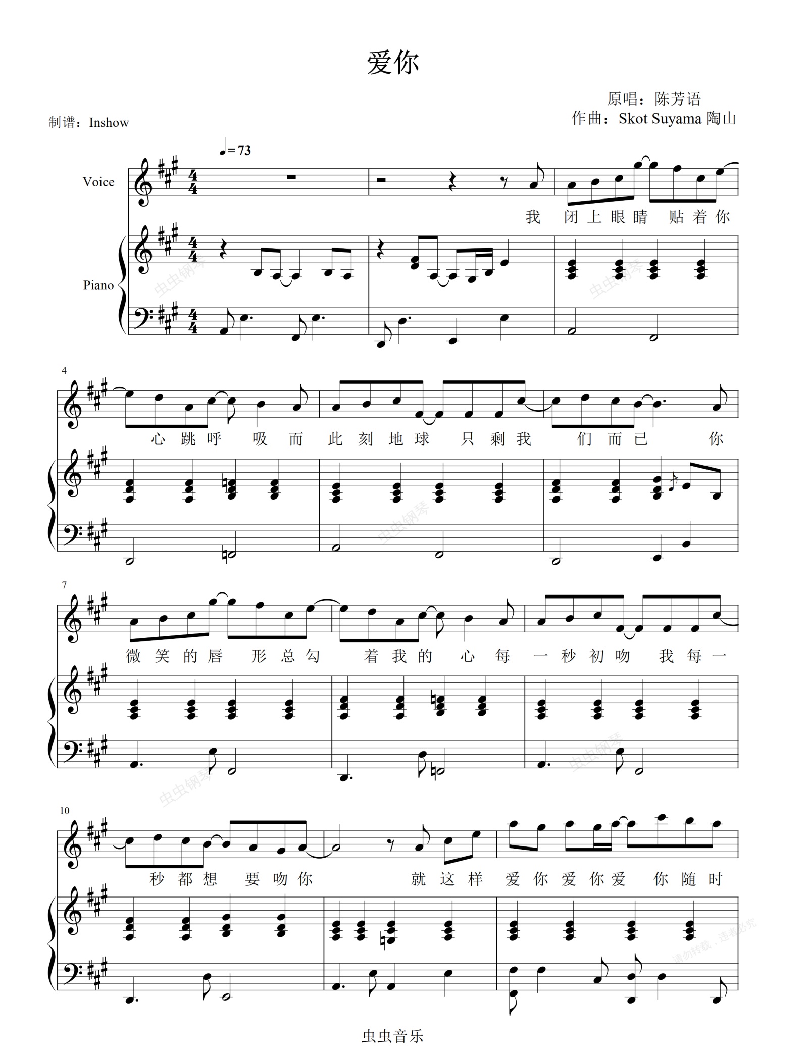 钢琴谱:陈芳语 - 爱你【弹唱谱】