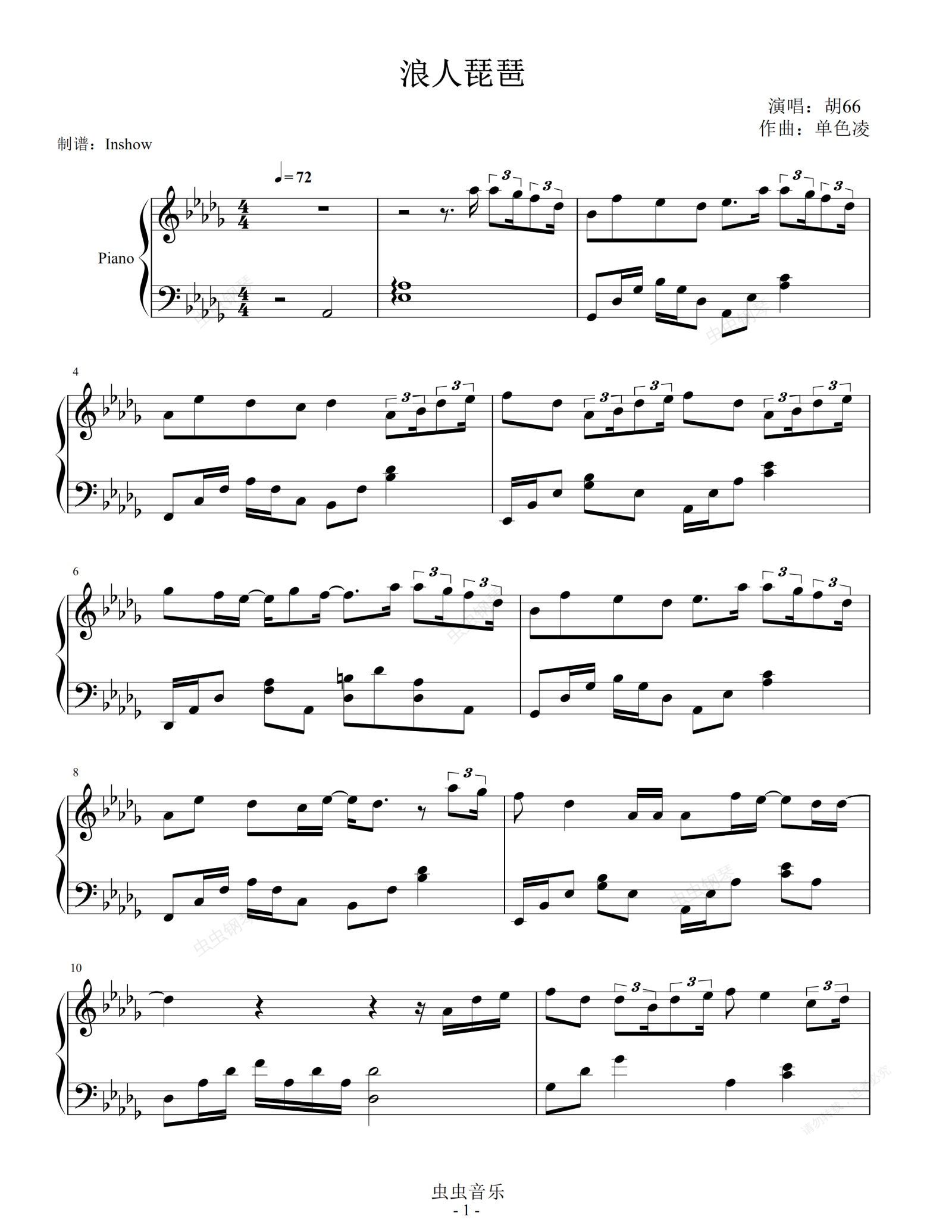 钢琴谱:胡66 - 浪人琵琶【独奏谱】