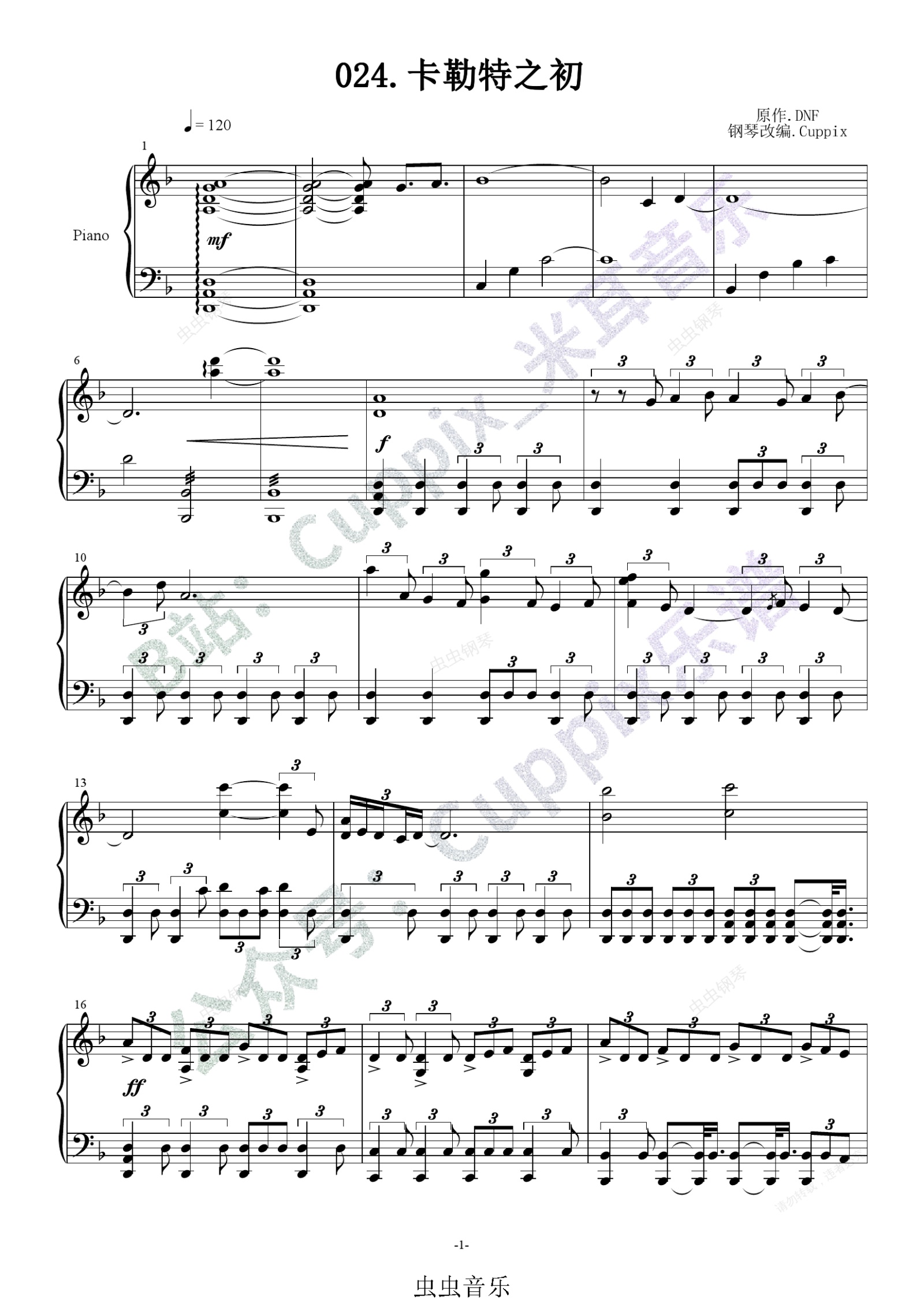 钢琴谱:DNF - 卡勒特之初(高度还原)