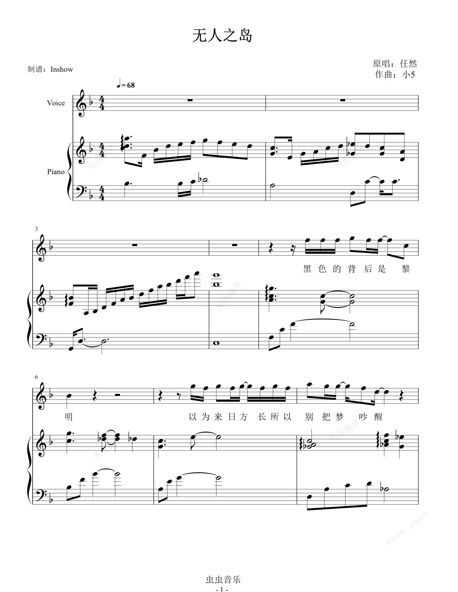 钢琴谱:任然 - 无人之岛【弹唱谱】