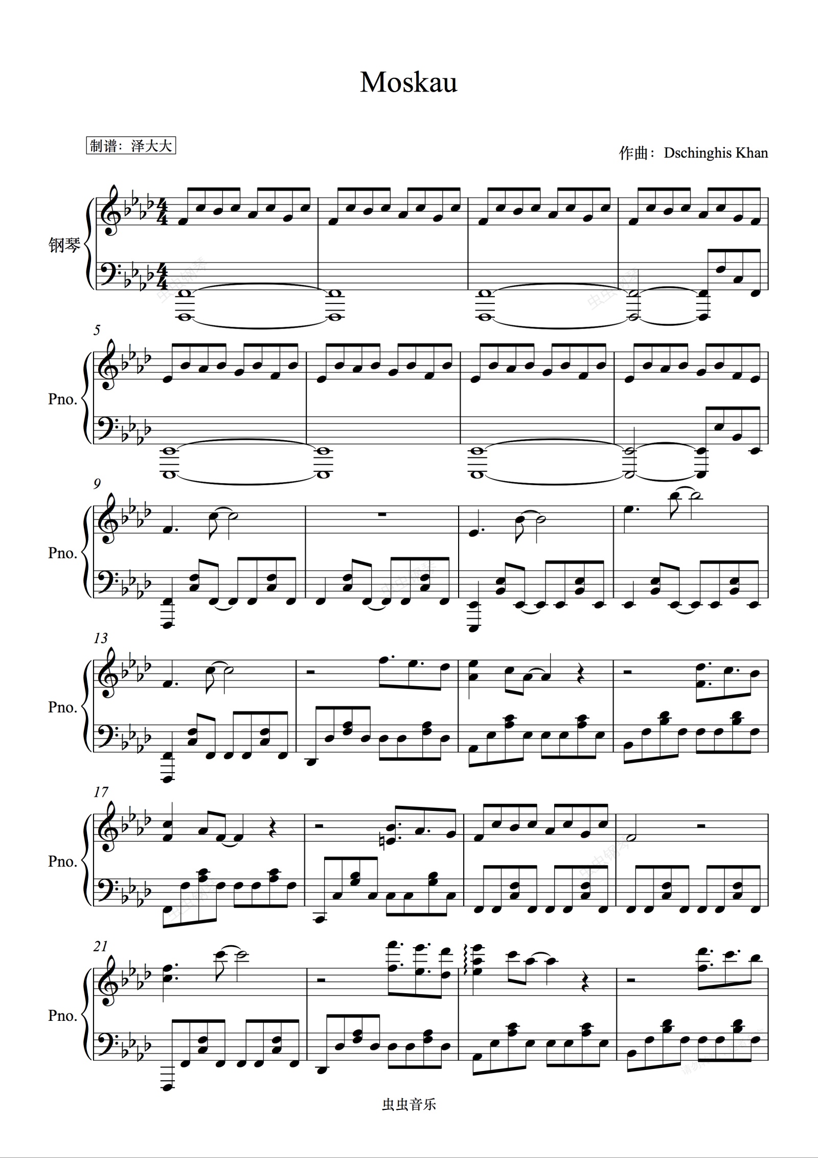 钢琴谱:Moskau(完美独奏版)