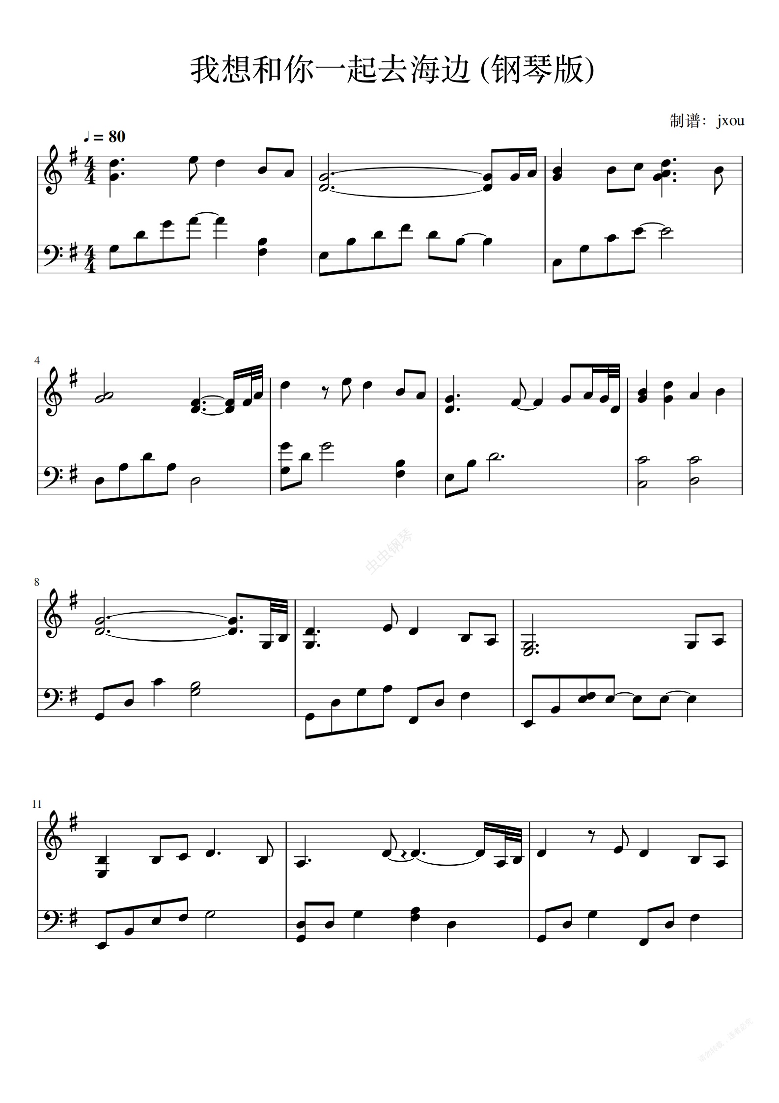 钢琴谱:我想和你一起去海边 刺客伍六七