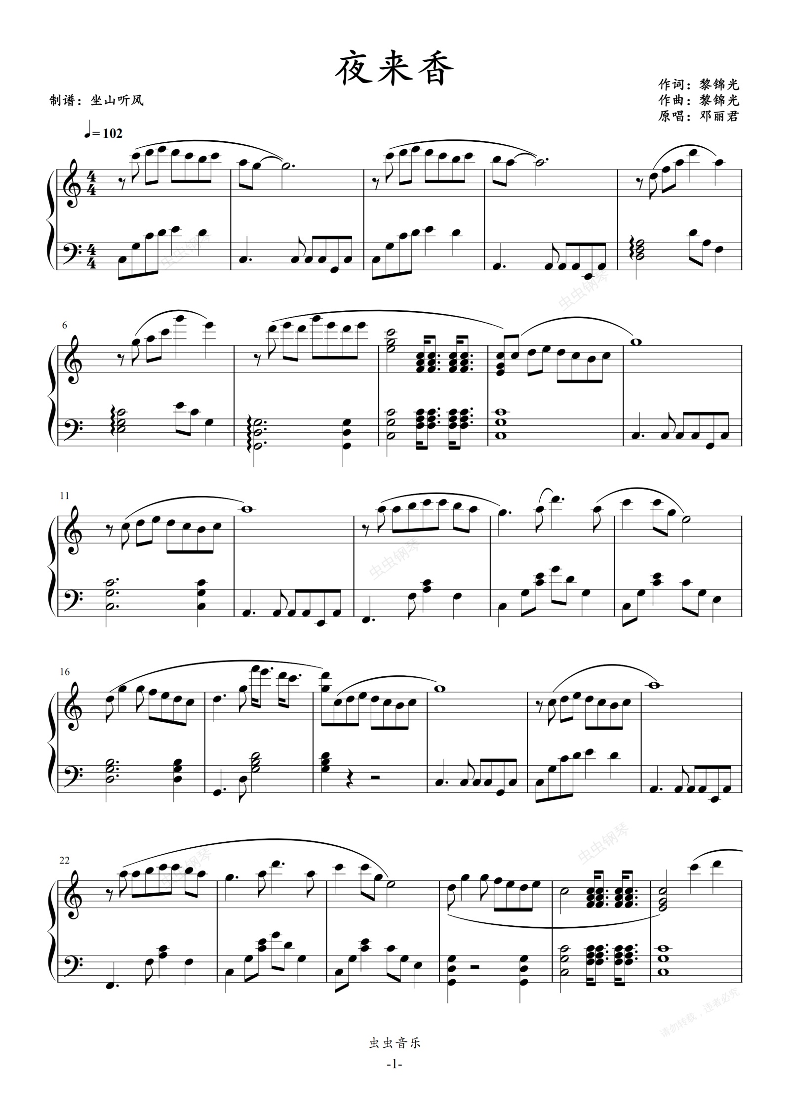 钢琴谱:夜来香——唯美易弹版