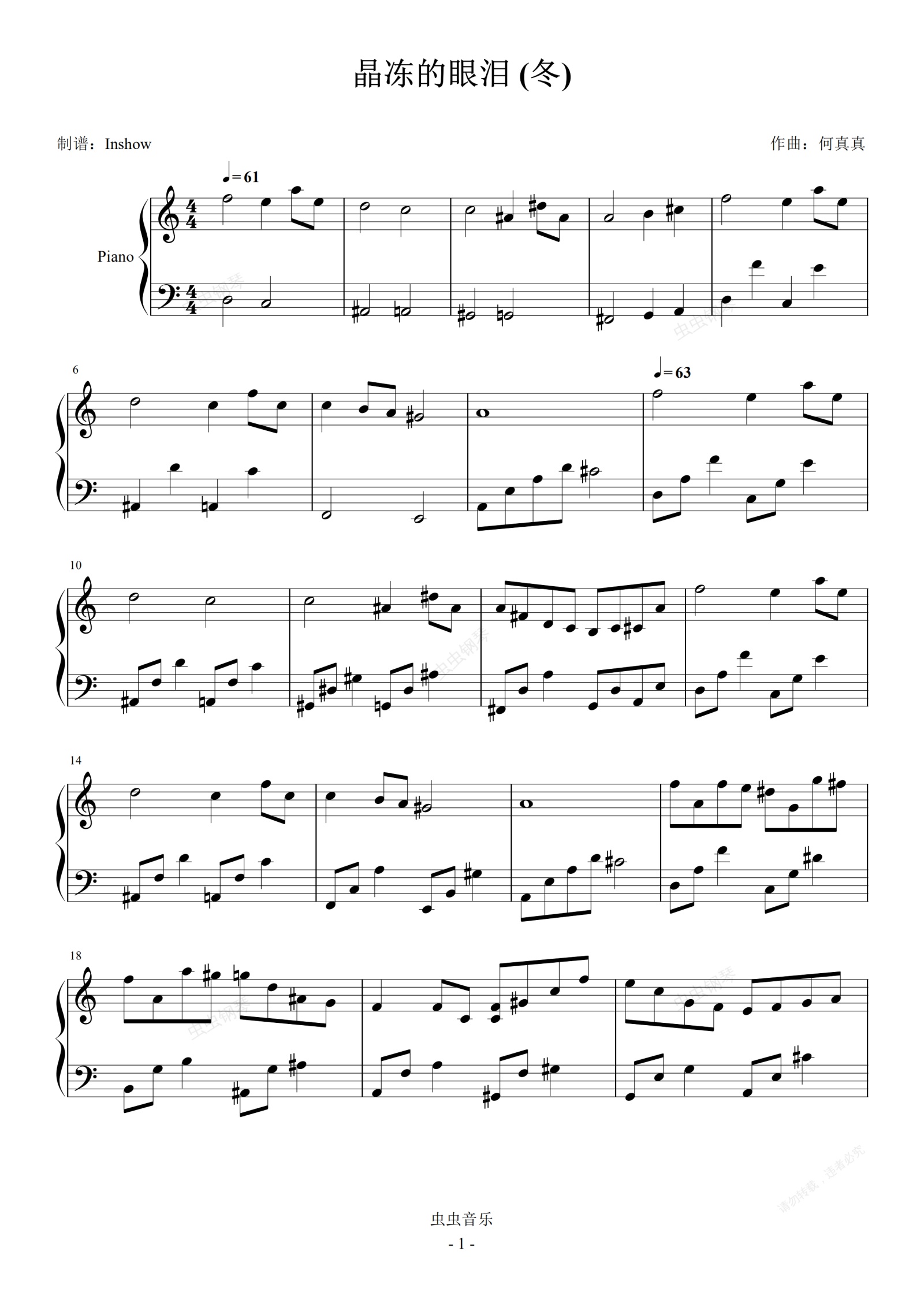 钢琴谱:何真真 - 晶冻的眼泪(冬)【独奏谱】