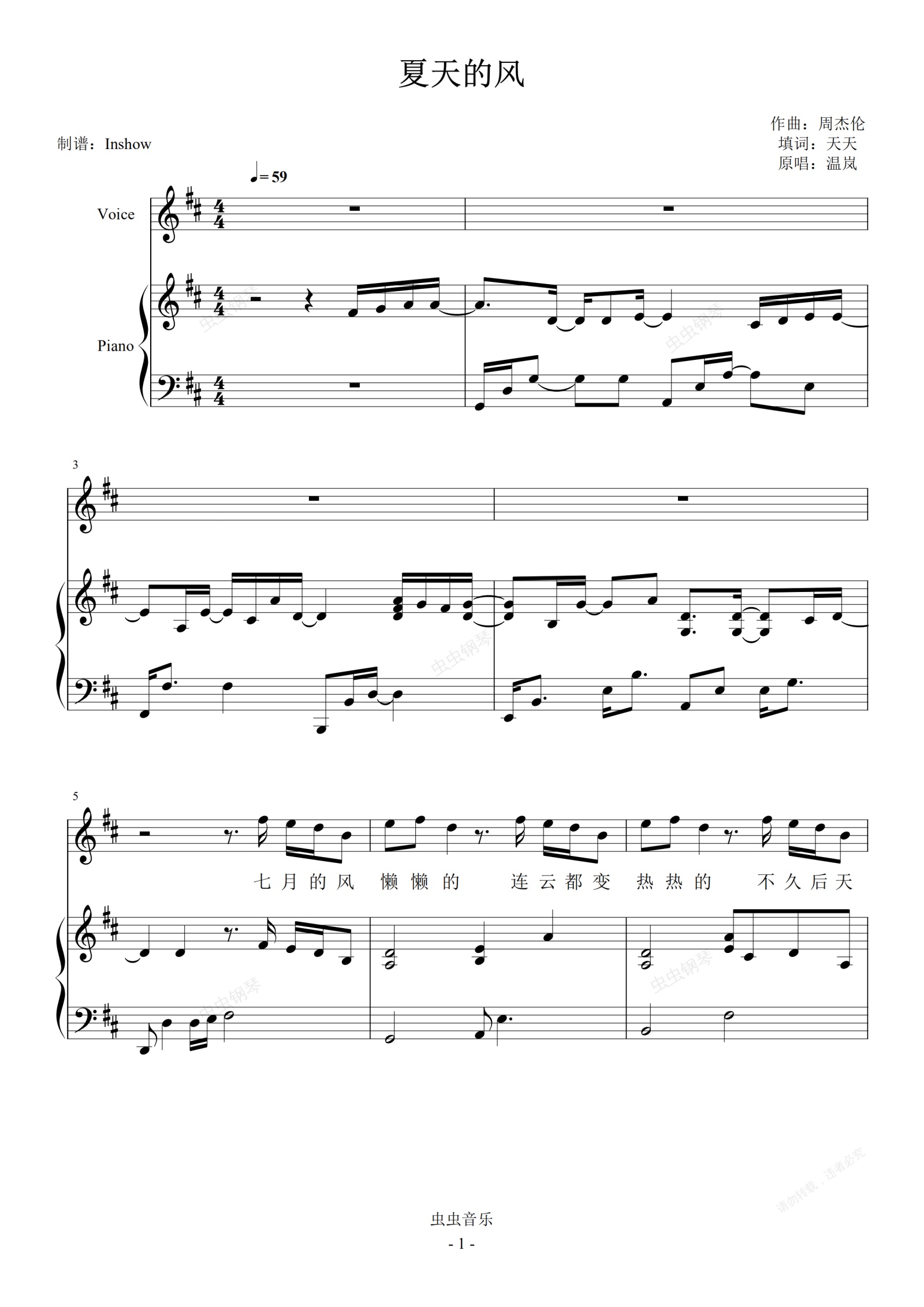 钢琴谱:温岚 - 夏天的风【弹唱谱】