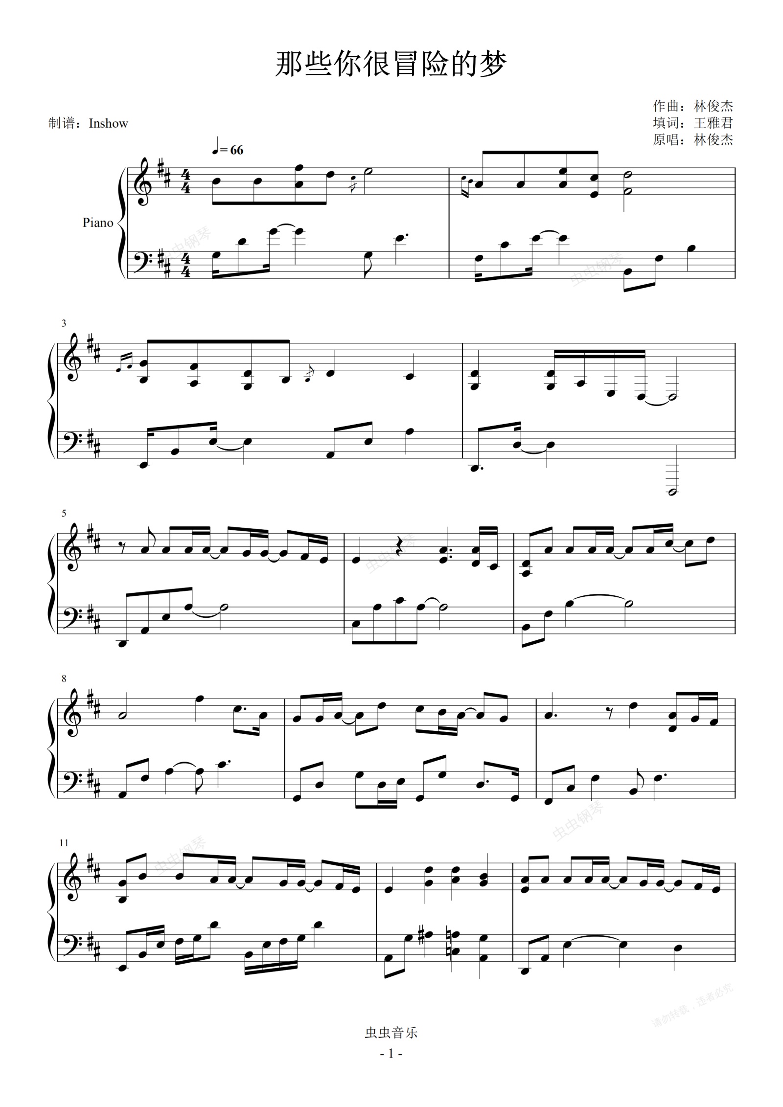 钢琴谱:林俊杰 - 那些你很冒险的梦【独奏谱】