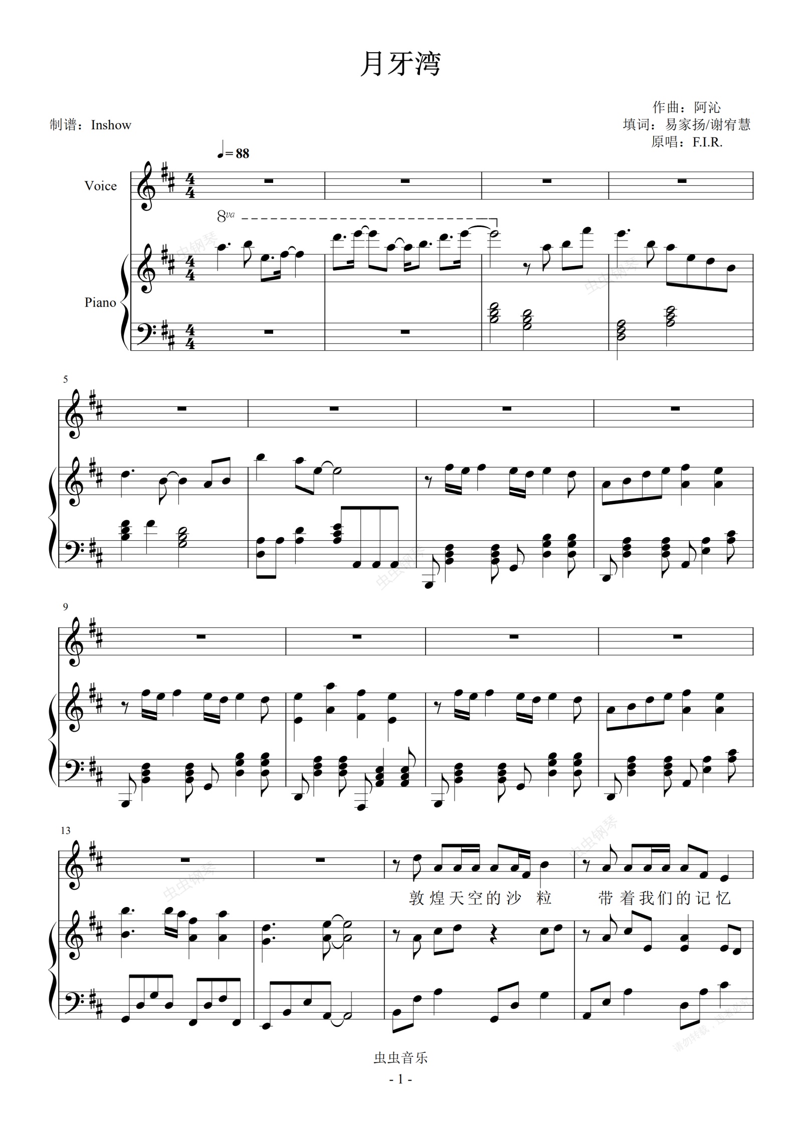 钢琴谱:F.I.R. - 月牙湾【弹唱谱】