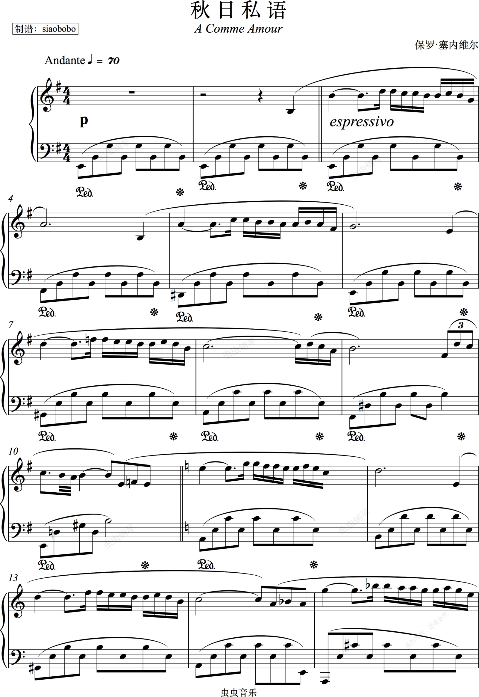 钢琴谱:秋日私语(高清)-秋日的私语(A Comme Amour)-C调