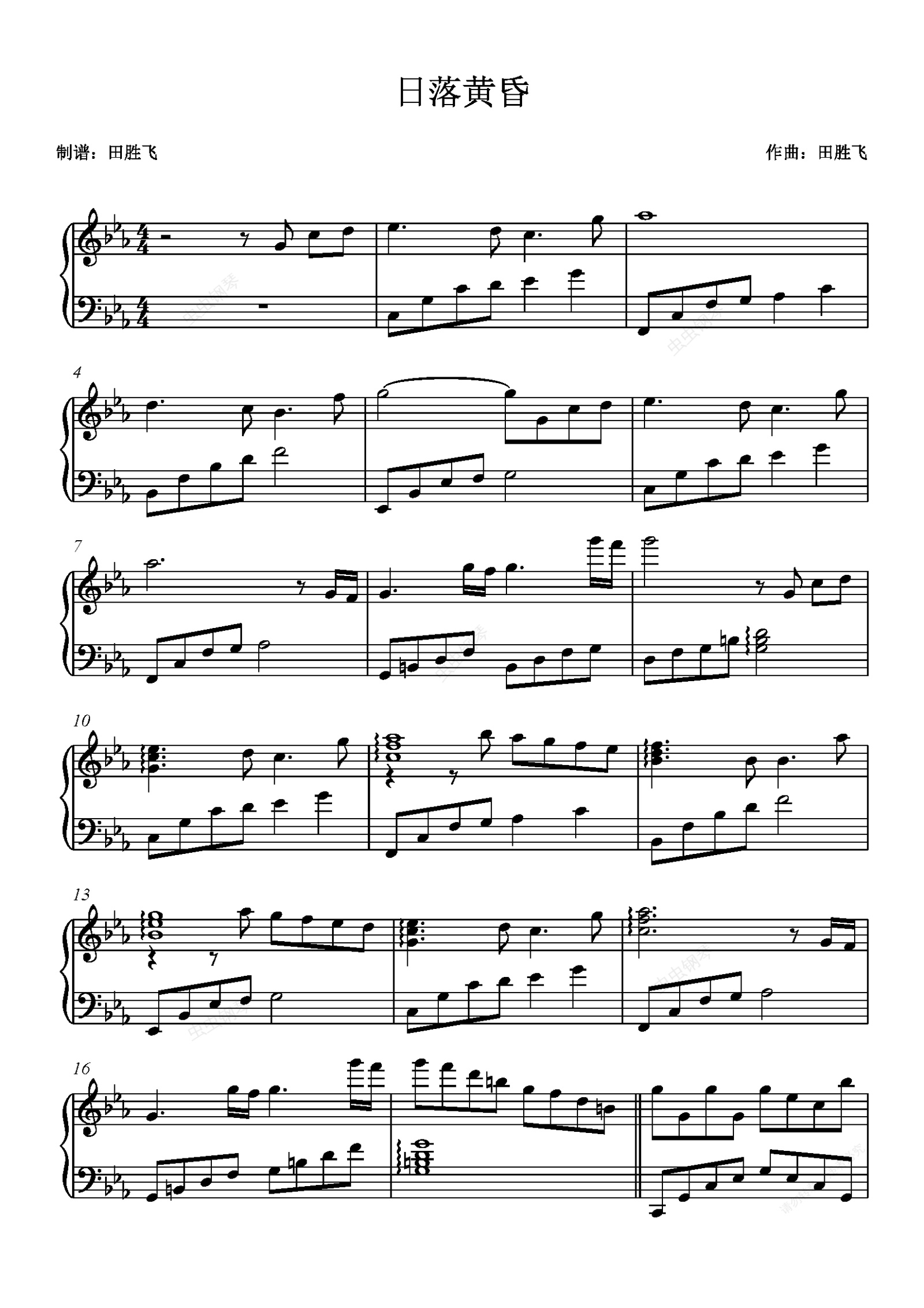 钢琴谱:日落黄昏-田胜飞 c小调独奏