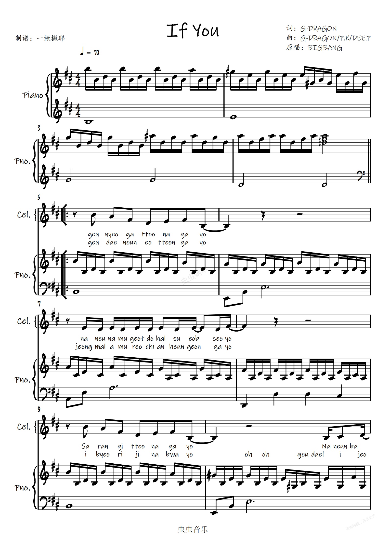 钢琴谱:If You【女版弹唱】BIGBANG「一撇撇耶」