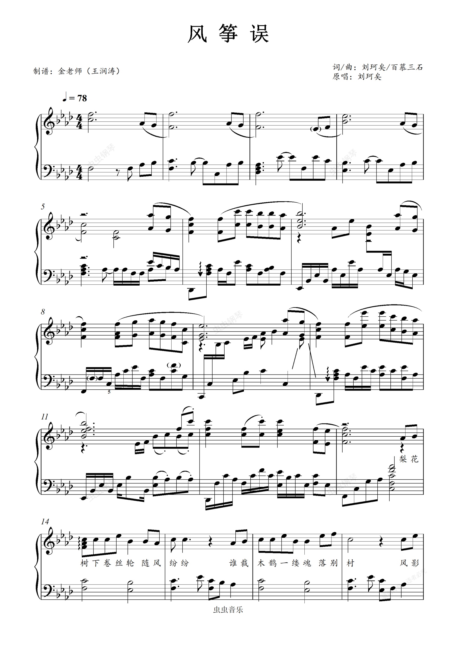 钢琴谱:风筝误-金老师原声独奏钢琴谱