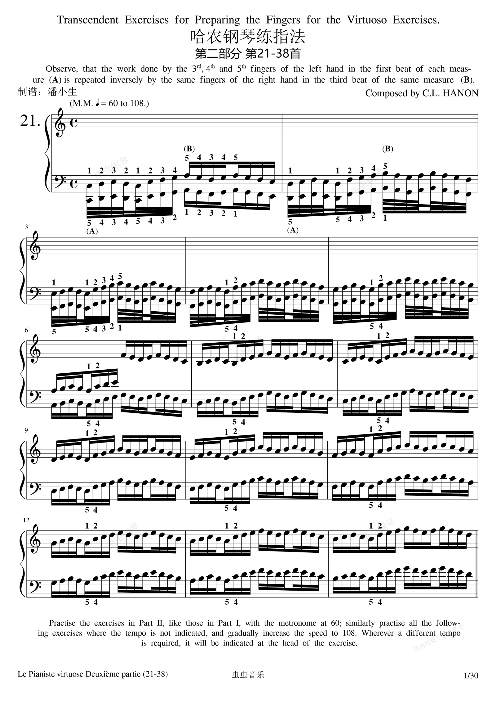 钢琴谱:哈农 钢琴练指法 21-38首 合集 第二部分 高清原版 专业校对