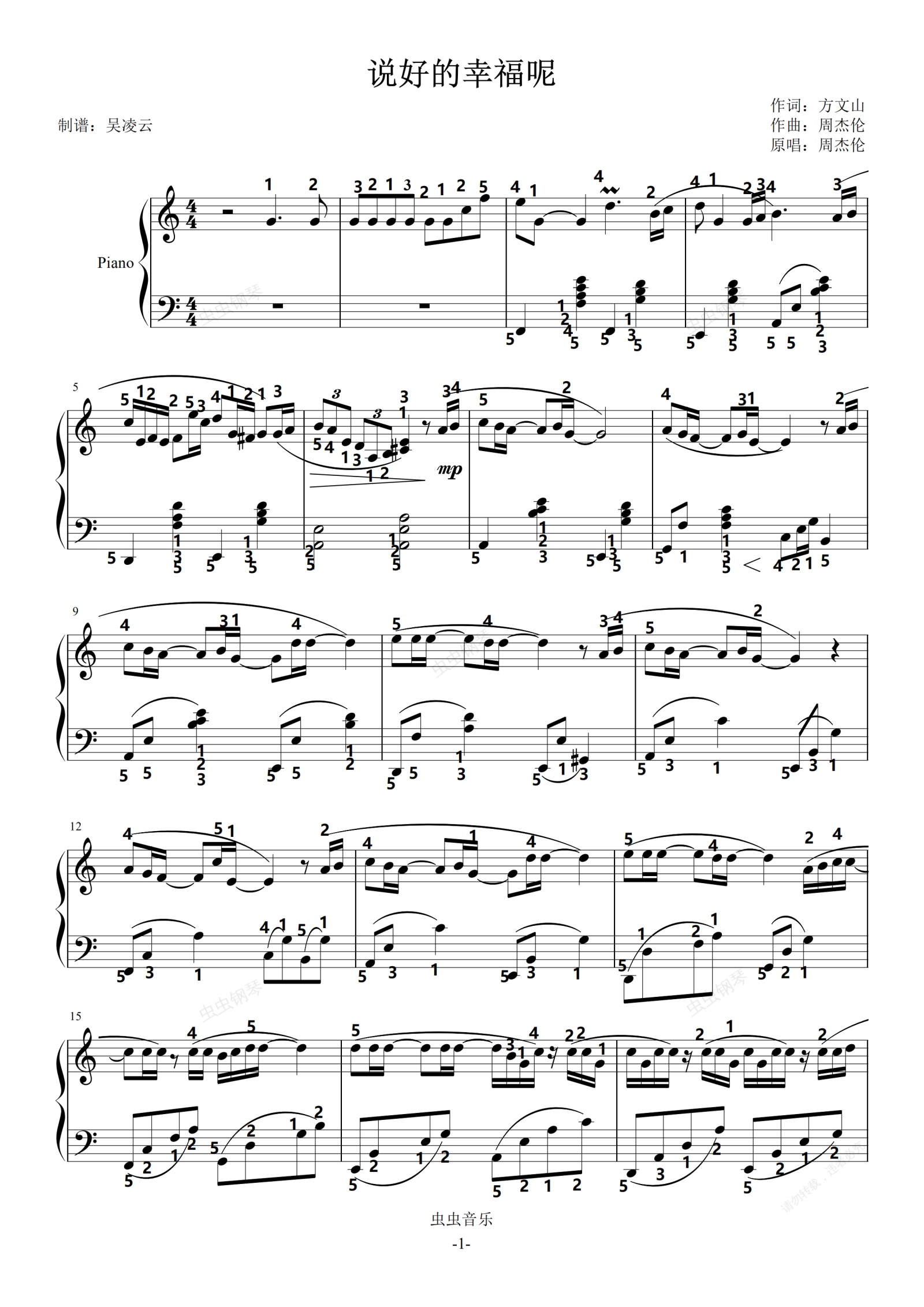 钢琴谱:说好的幸福呢 周杰伦 带指法初学者易上手 吴凌云流行钢琴基础教程中套选辑