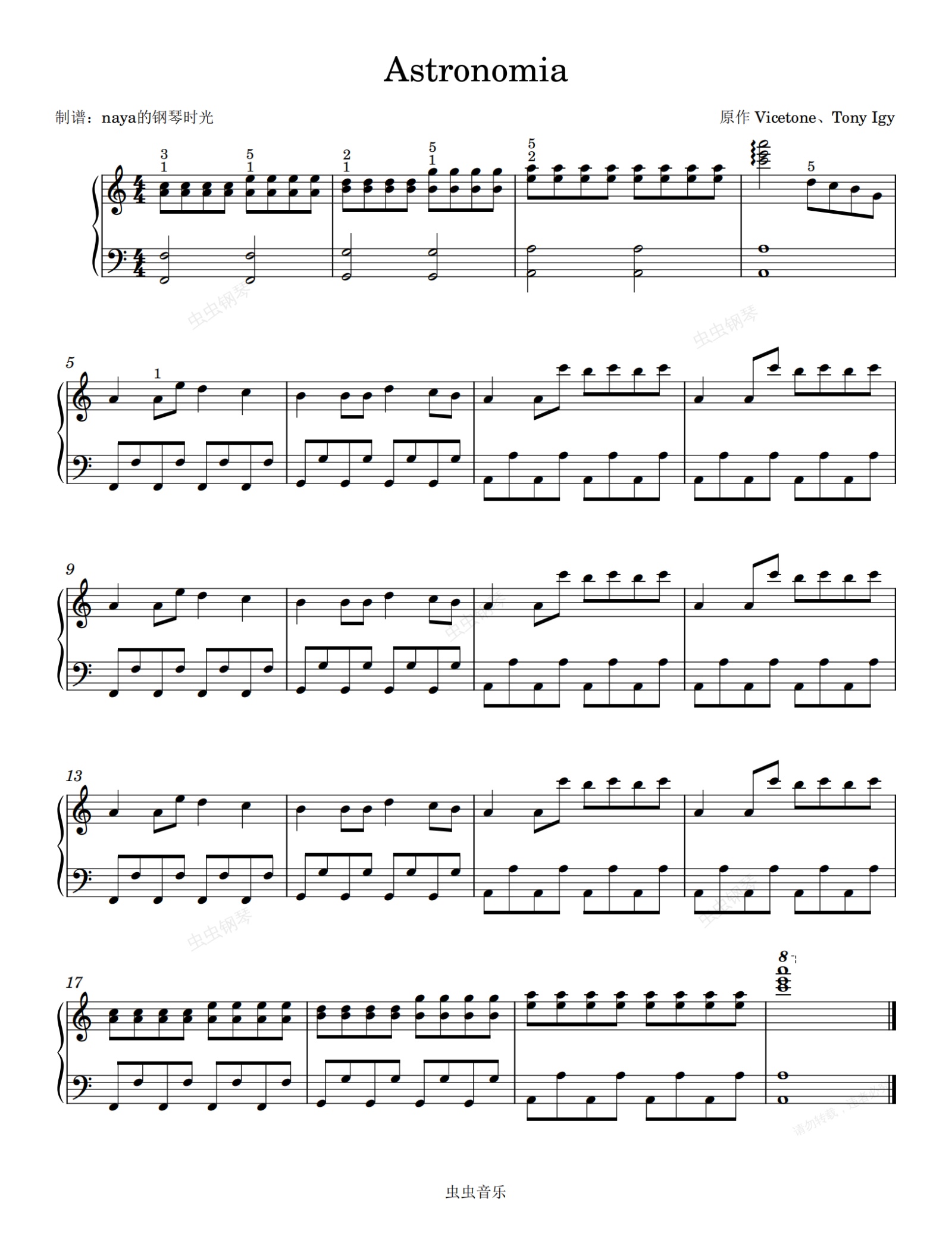 钢琴谱:Astronomia(黑人抬棺BGM)-C调简易