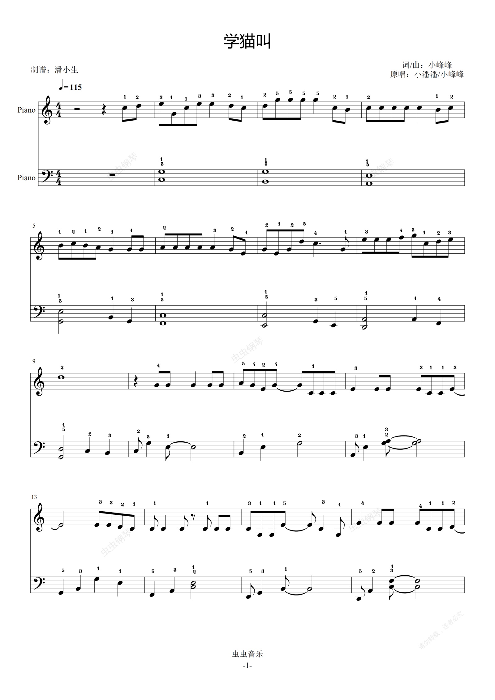 钢琴谱:学猫叫 完整指法 C调 初学者优选 简化版
