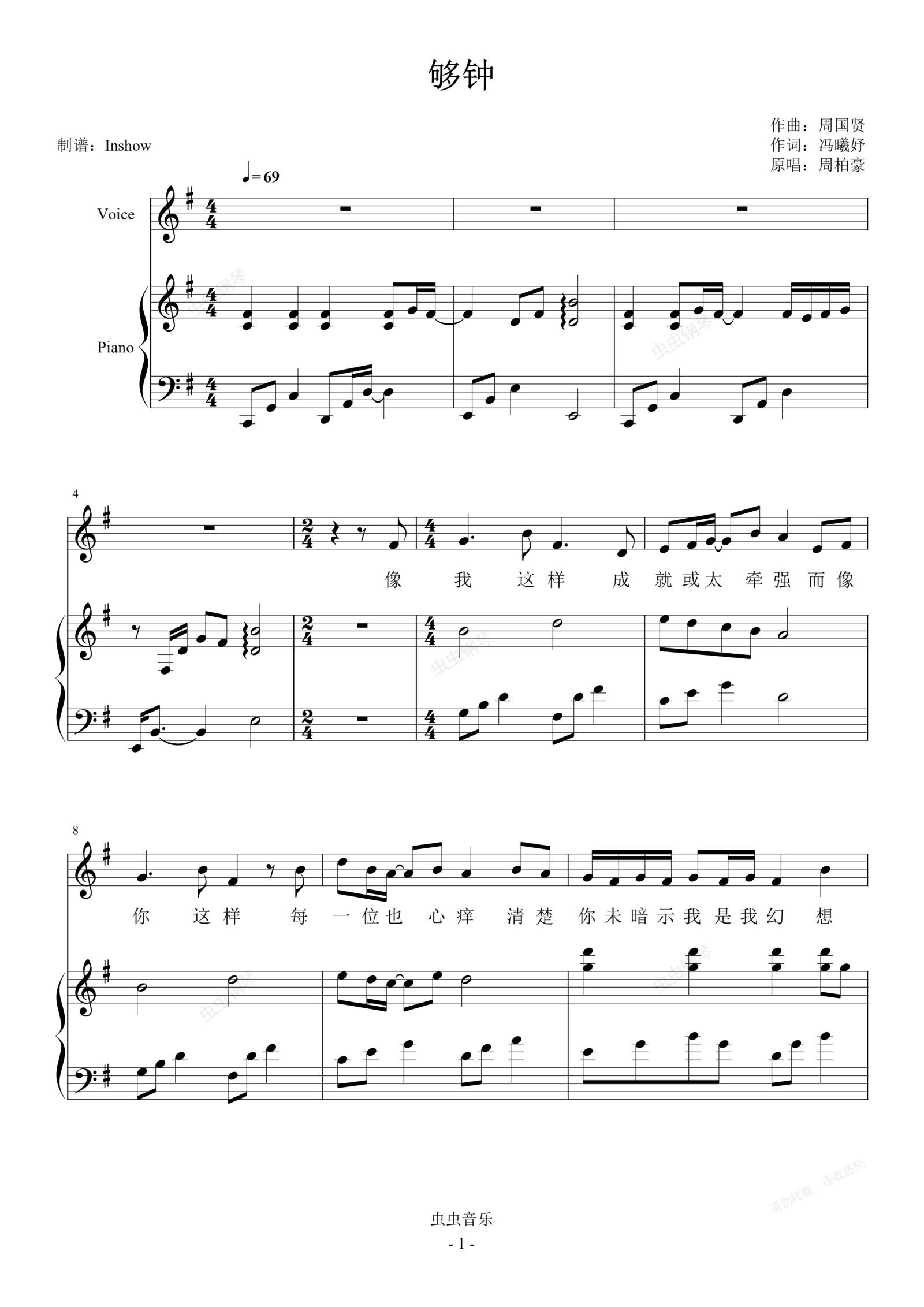 钢琴谱:周柏豪 - 够钟【弹唱谱】
