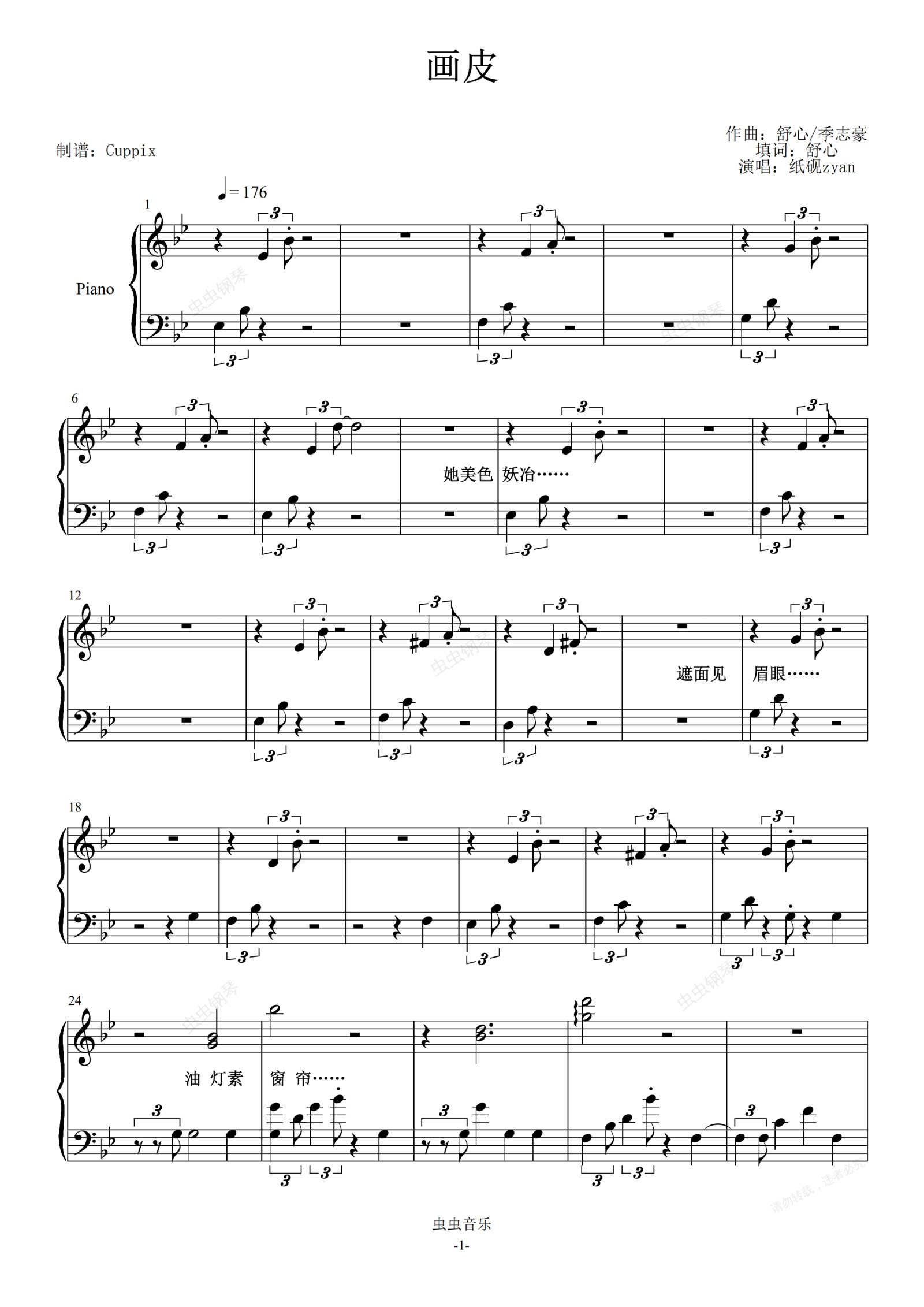 钢琴谱:纸砚zyan《画皮》弹唱伴奏_高度还原