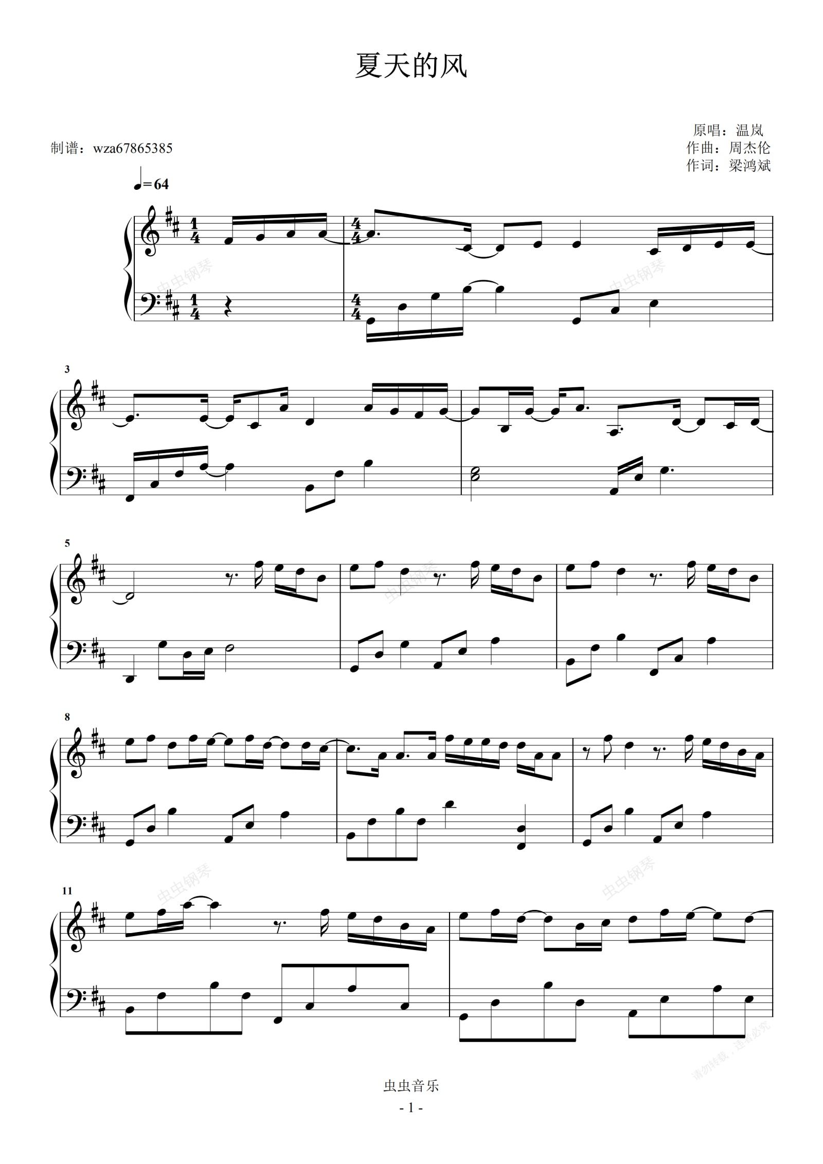 钢琴谱:夏天的风