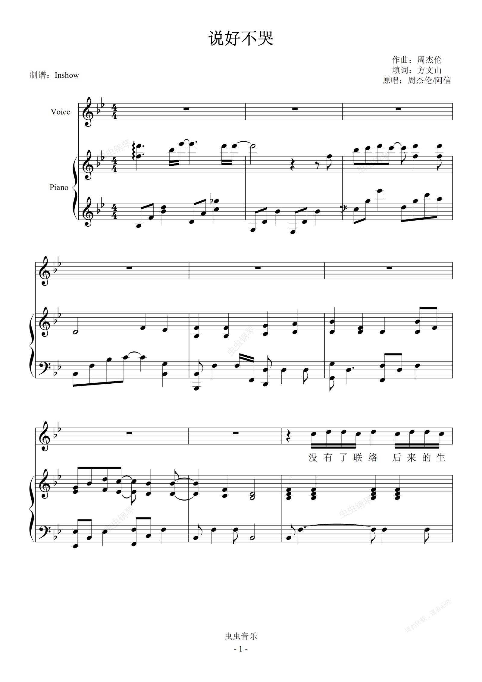 钢琴谱:周杰伦 - 说好不哭【弹唱谱】