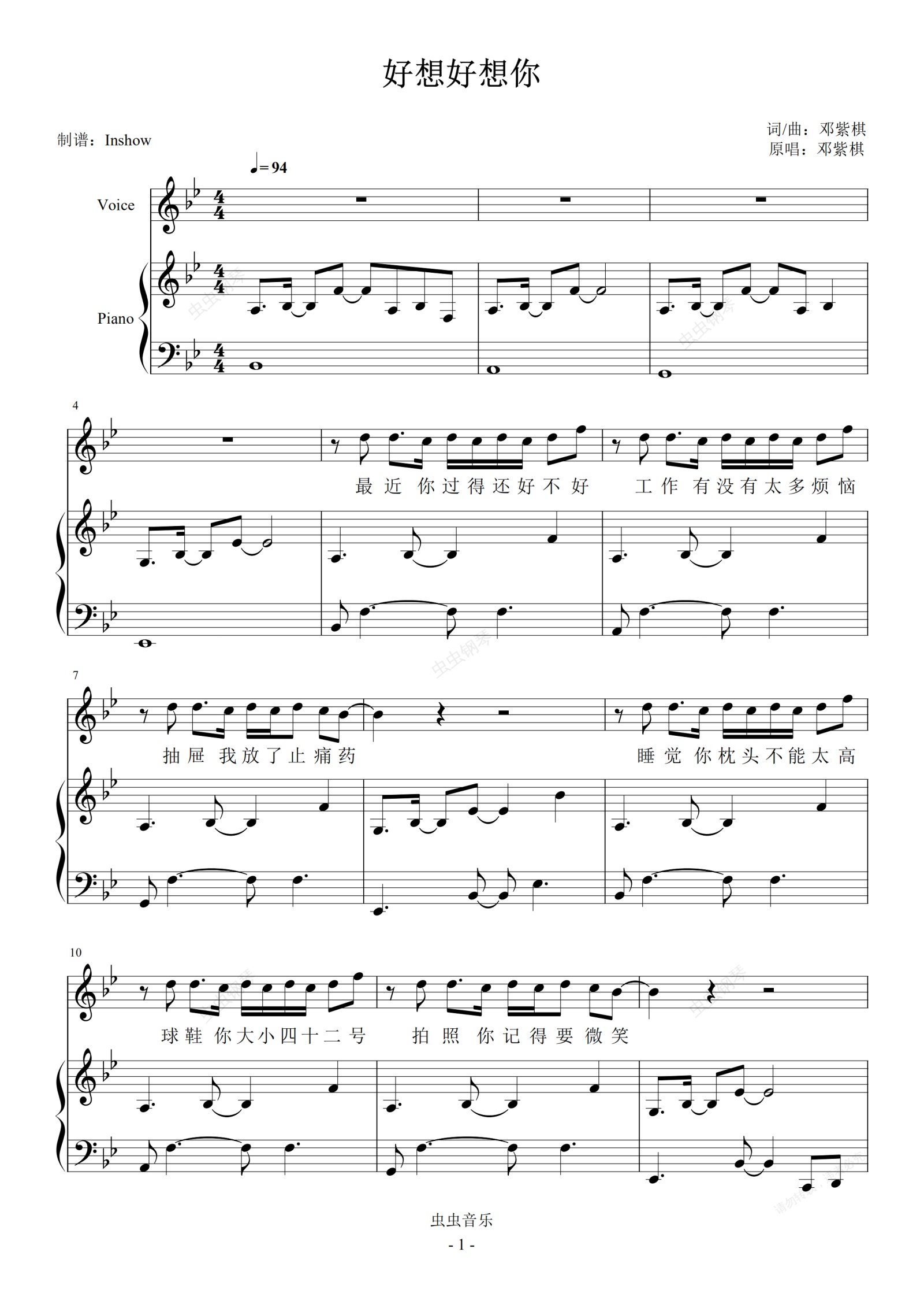 钢琴谱:G.E.M. 邓紫棋 - 好想好想你【弹唱谱】