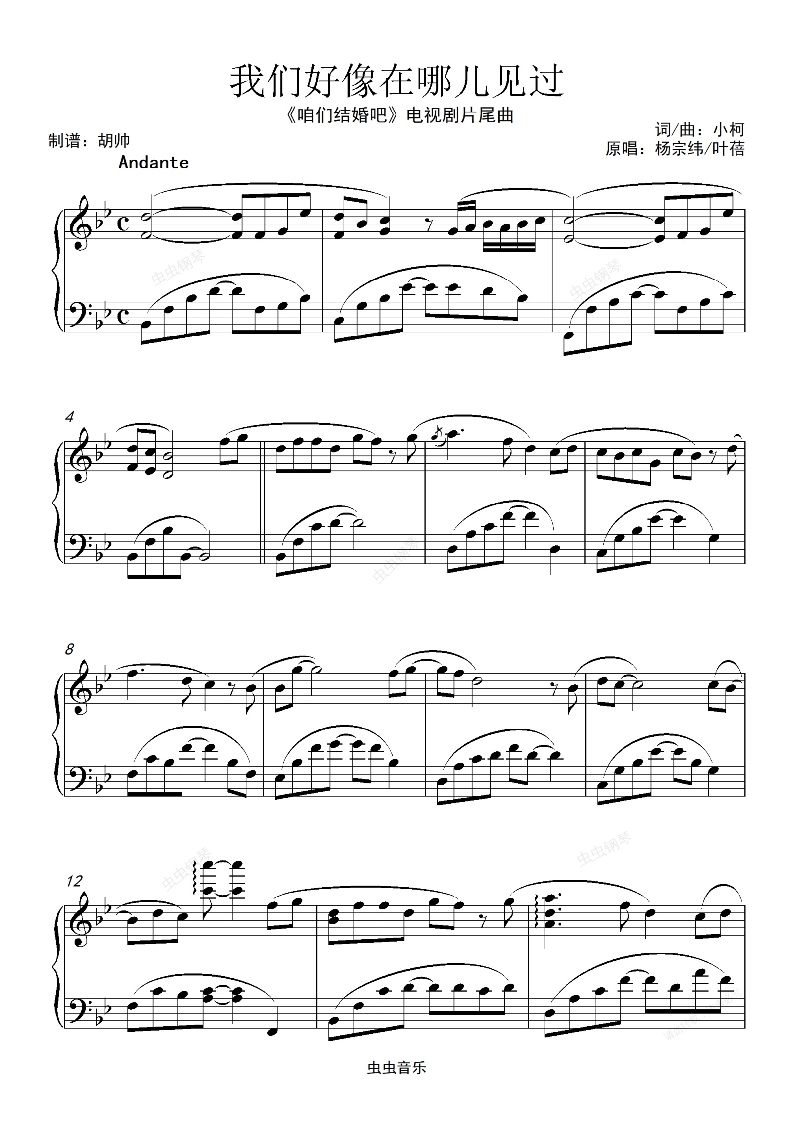 钢琴谱:我们好像在哪儿见过【原调】《咱们结婚吧》电视剧片尾曲