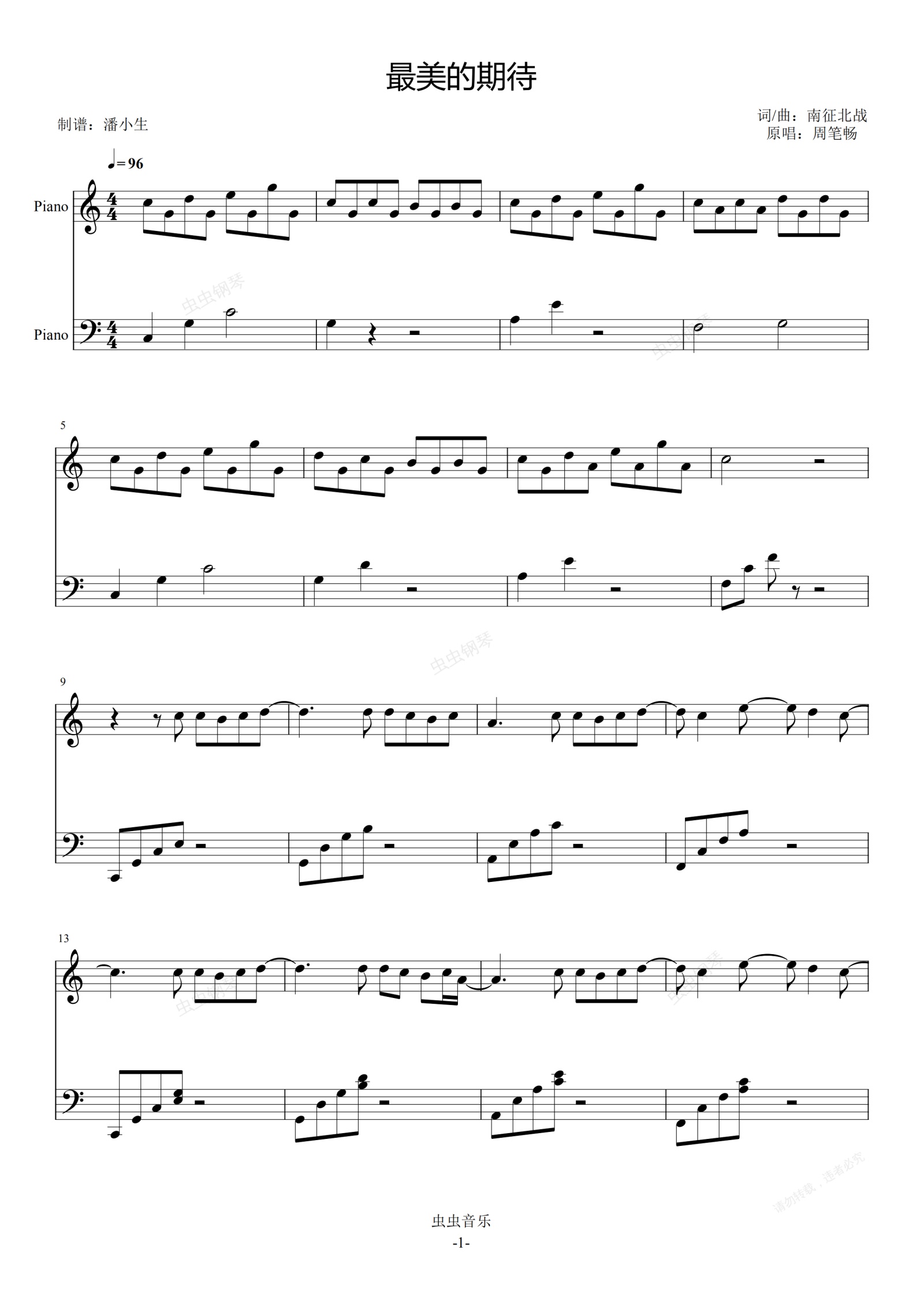 钢琴谱:最美的期待 C调 独奏 简易版《茧镇奇缘》电视剧片头曲