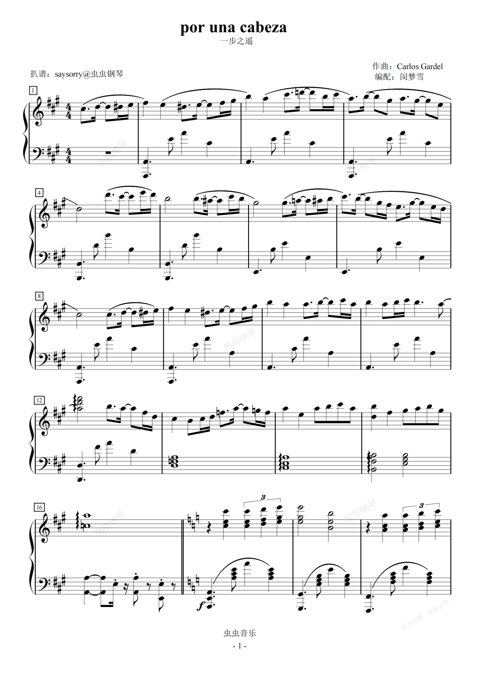 钢琴谱:por una cabeza/一步之遥——闵梦雪版