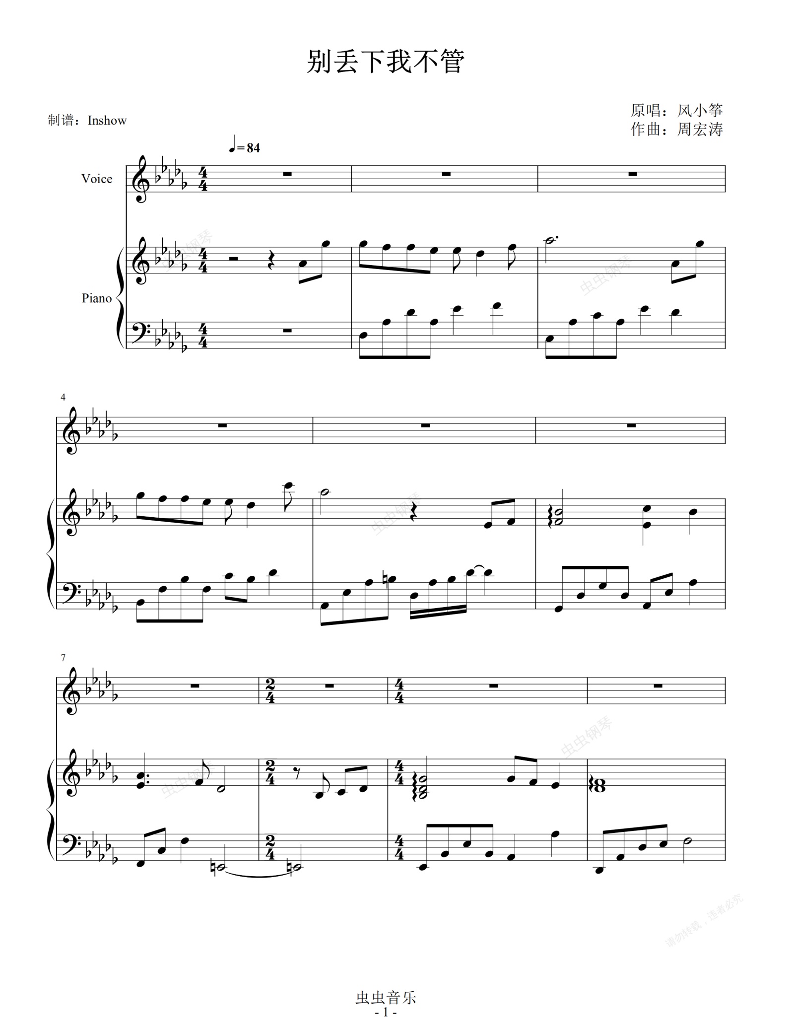 钢琴谱:风小筝 - 别丢下我不管【弹唱谱】