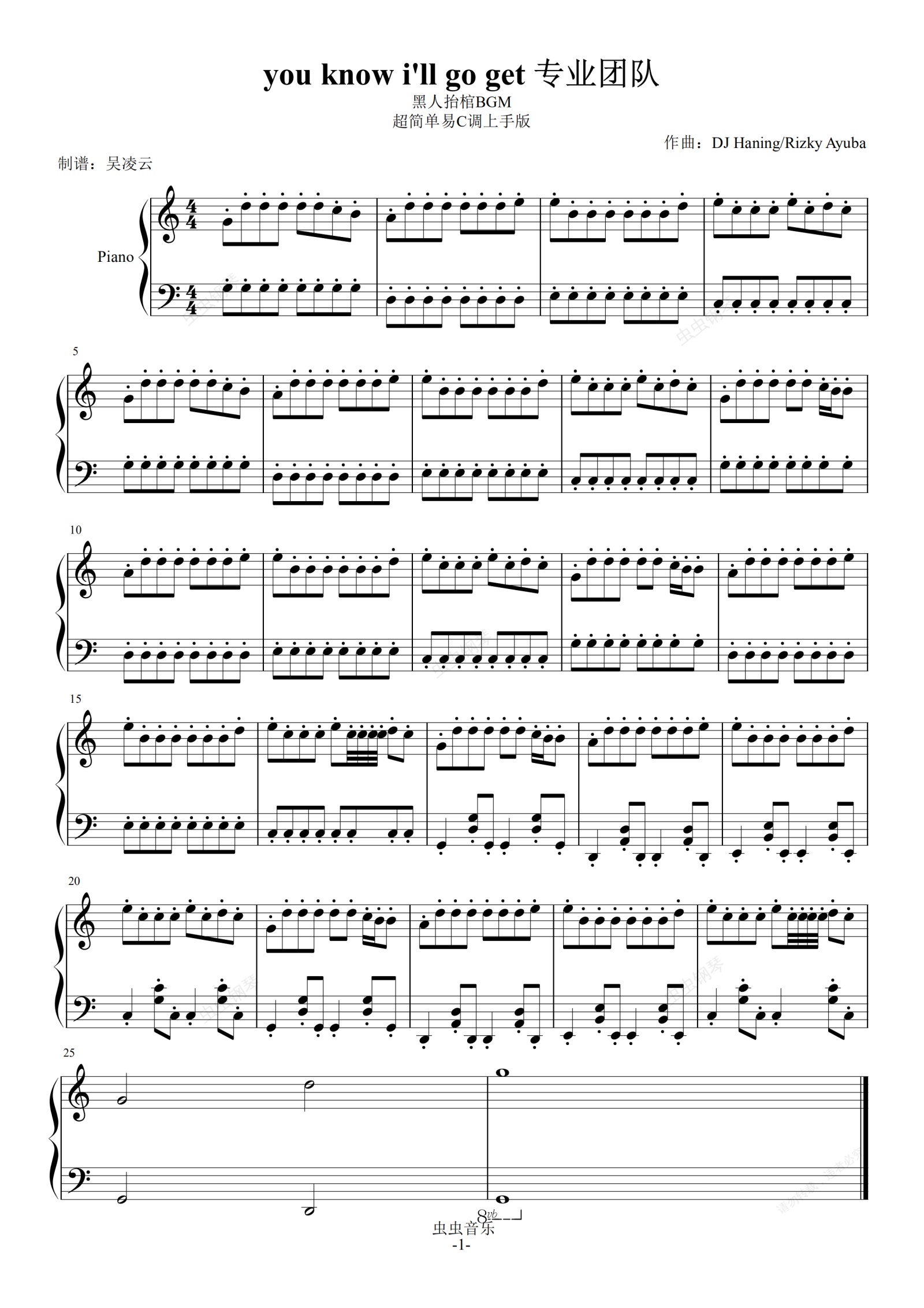 钢琴谱:黑人抬棺BGM 专业团队 《You Know I 'll Go Get》 超简单易C调上手吴凌云制版