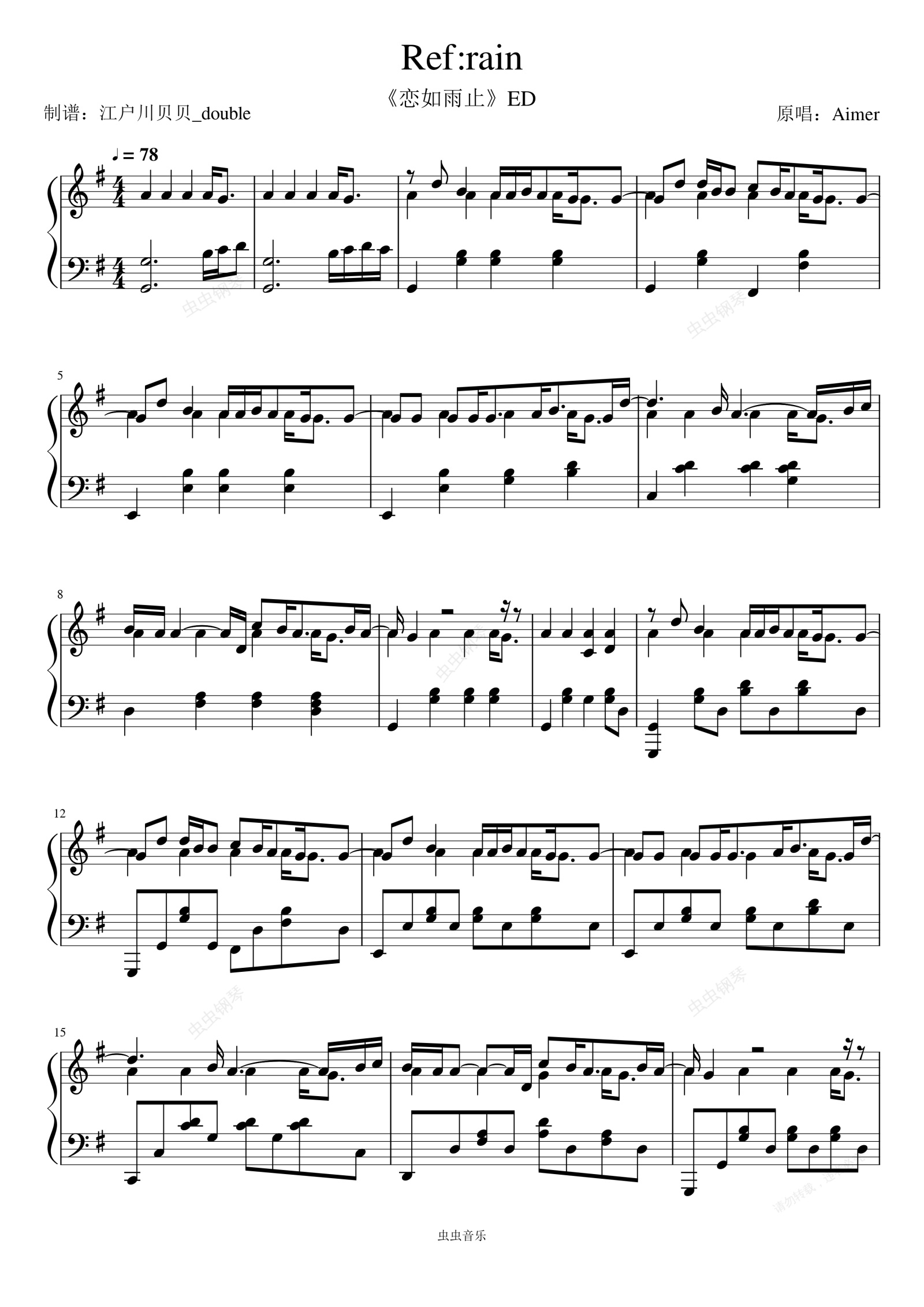 钢琴谱:【恋如雨止ED】Ref:rain(Aimer)