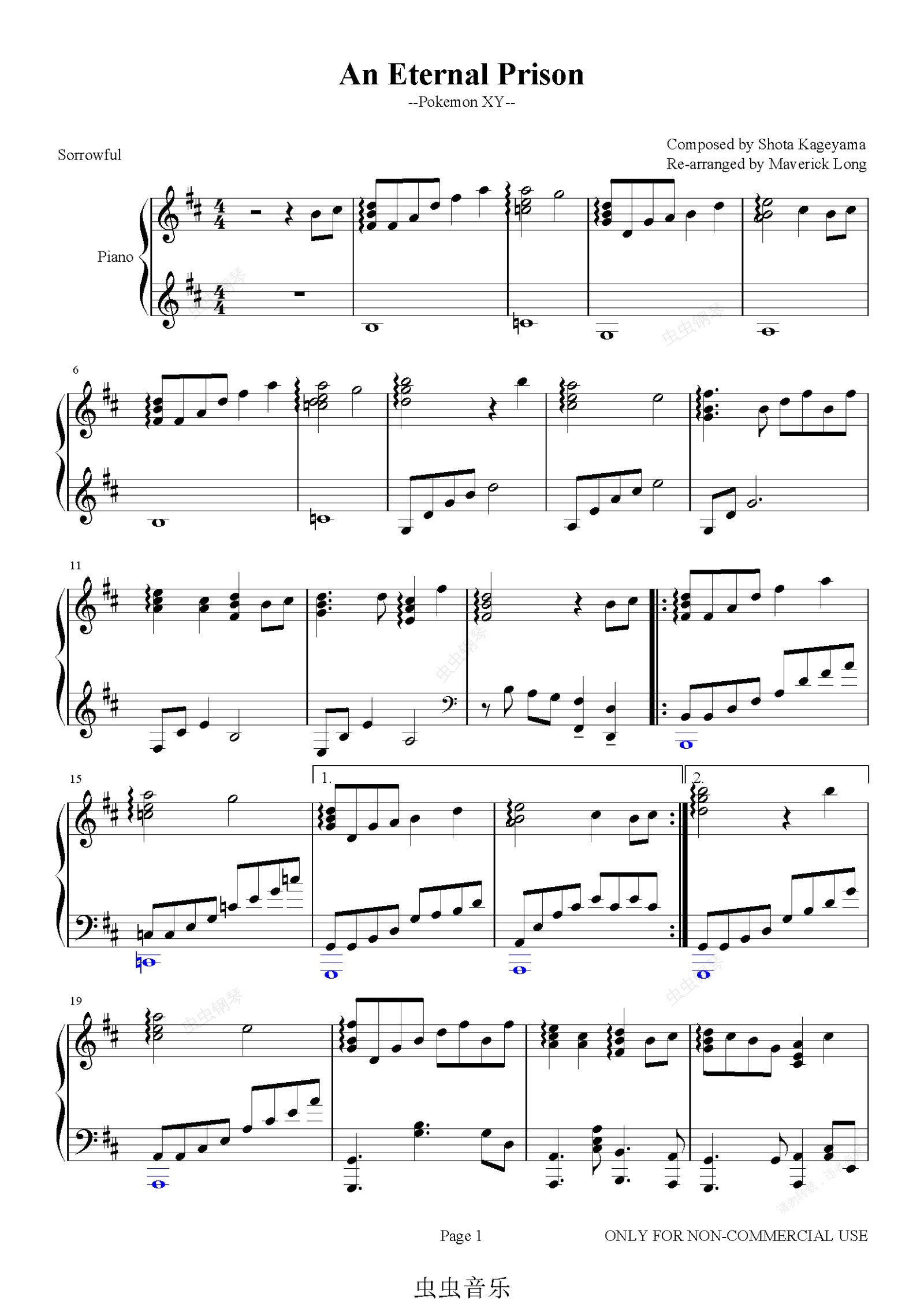 钢琴谱:An Eternal Prison (宝可梦XY插曲)