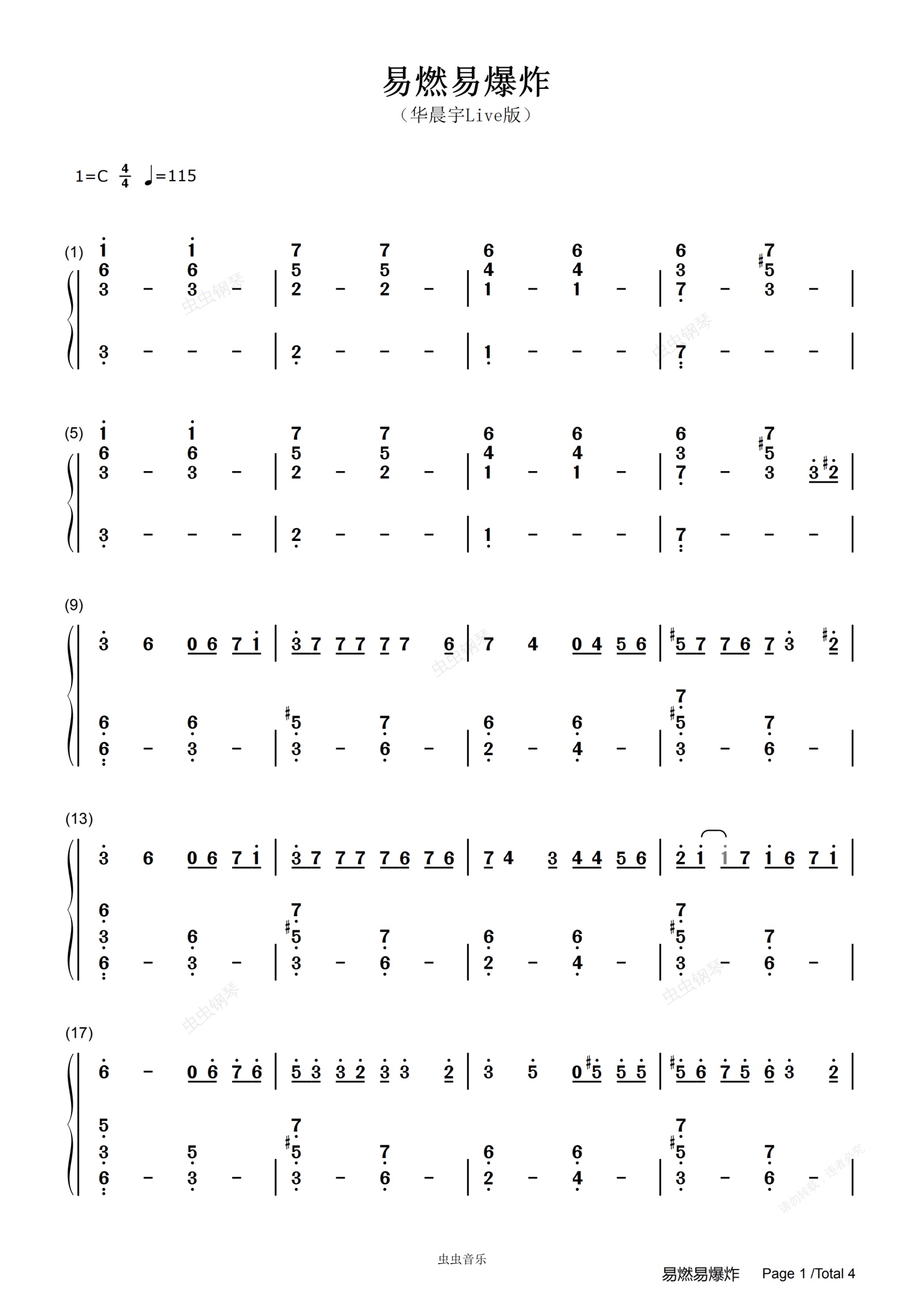 钢琴谱:易燃易爆炸 (Live)-简谱钢琴