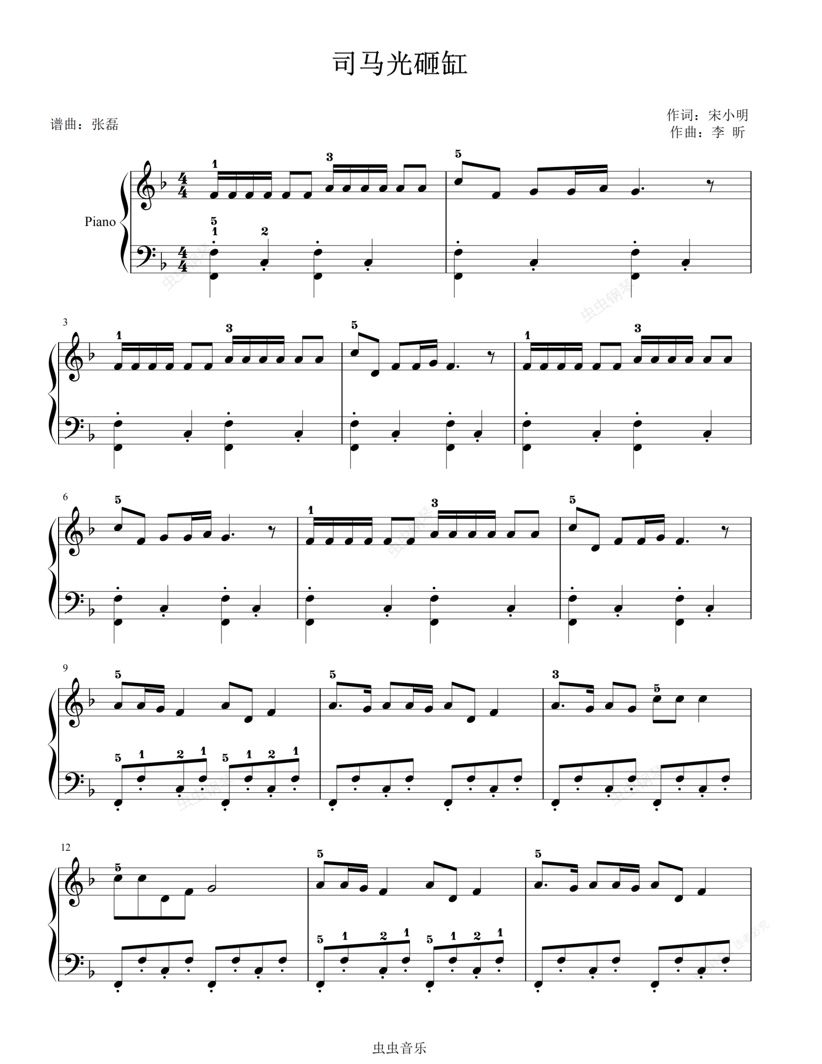 钢琴谱:司马光砸缸--儿童歌曲--F大调