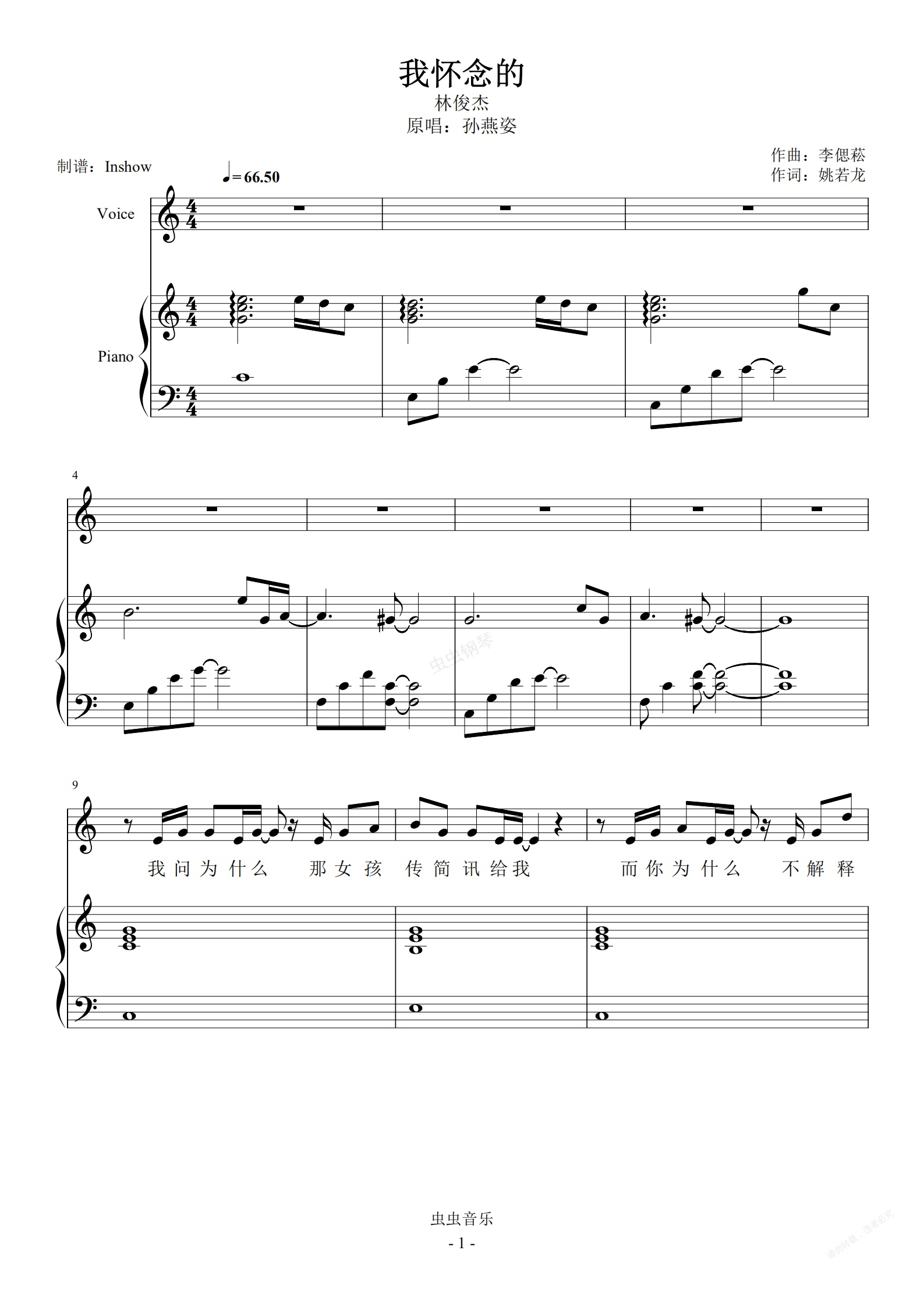 钢琴谱:我怀念的(Live)【弹唱谱】