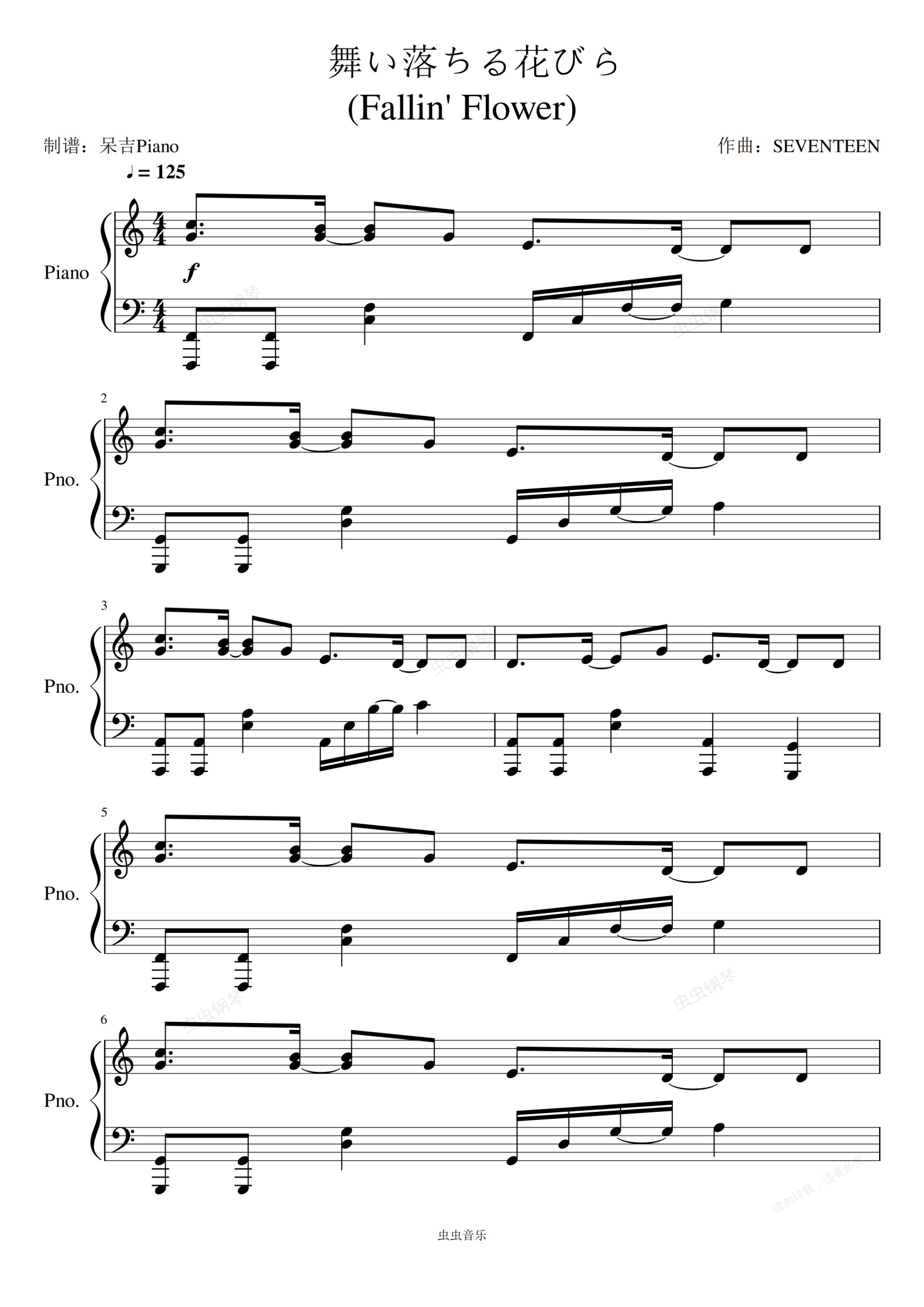 钢琴谱:舞い落ちる花びら(Fallin Flower) -Seventeen 钢琴版