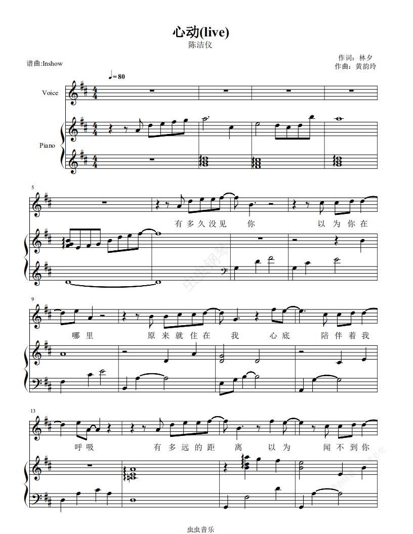 钢琴谱:心动(Live)- 陈洁仪 【弹唱谱】