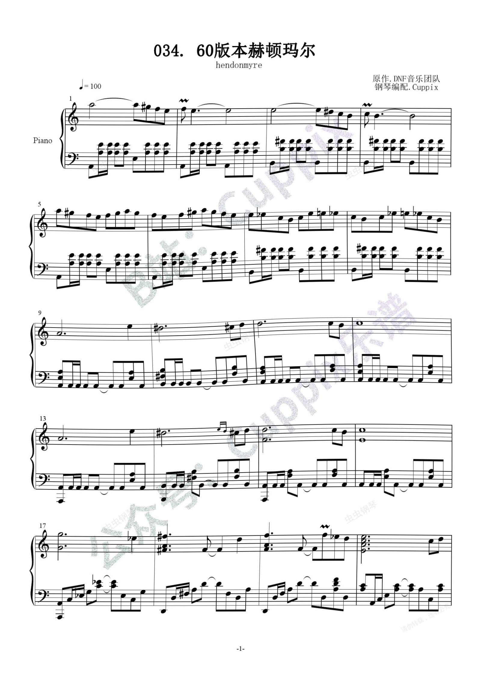 钢琴谱:DNF - 60版本赫顿玛尔(高度还原)