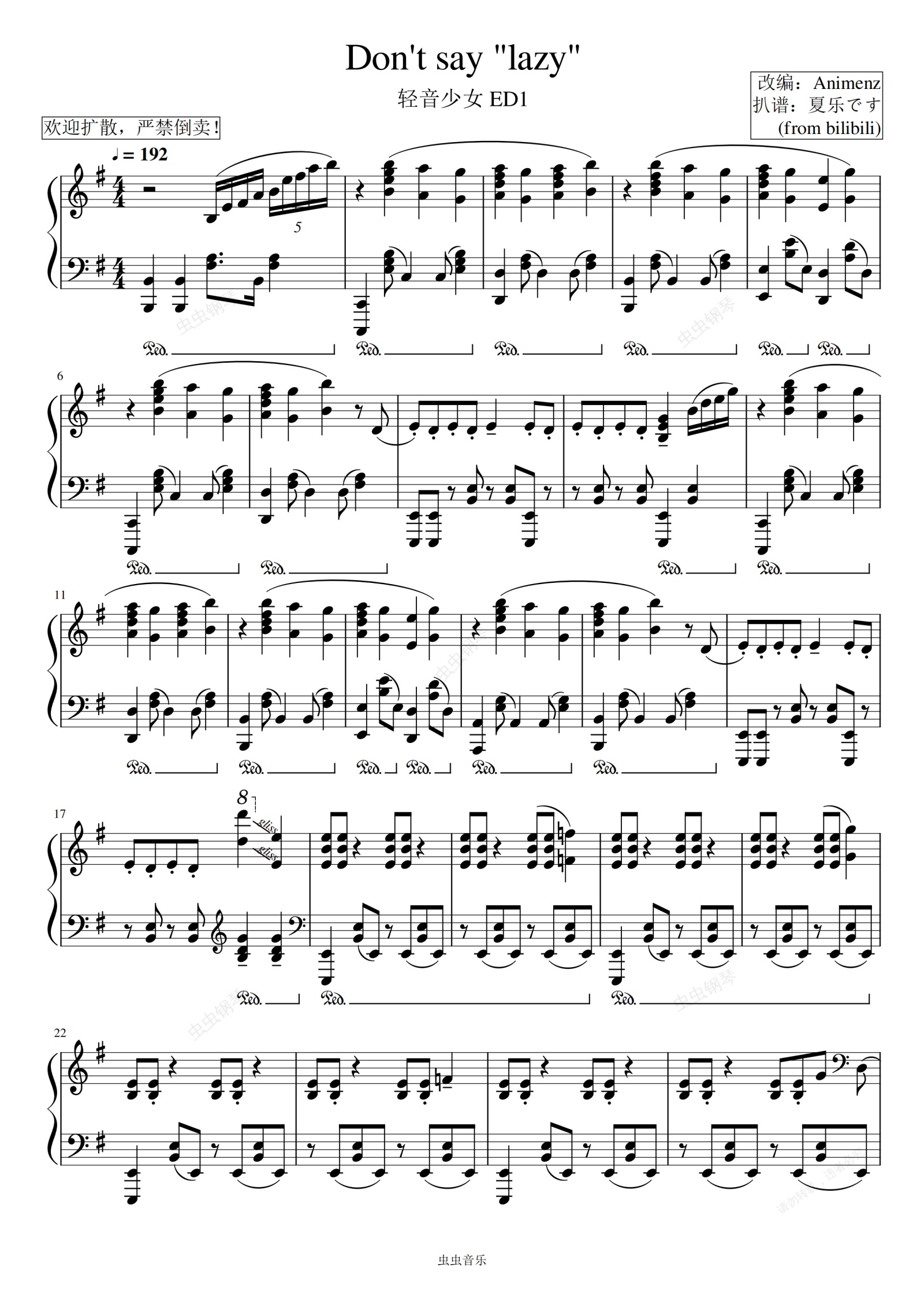 钢琴谱:【Animenz】Don't say "lazy" - 轻音少女 ED 钢琴版
