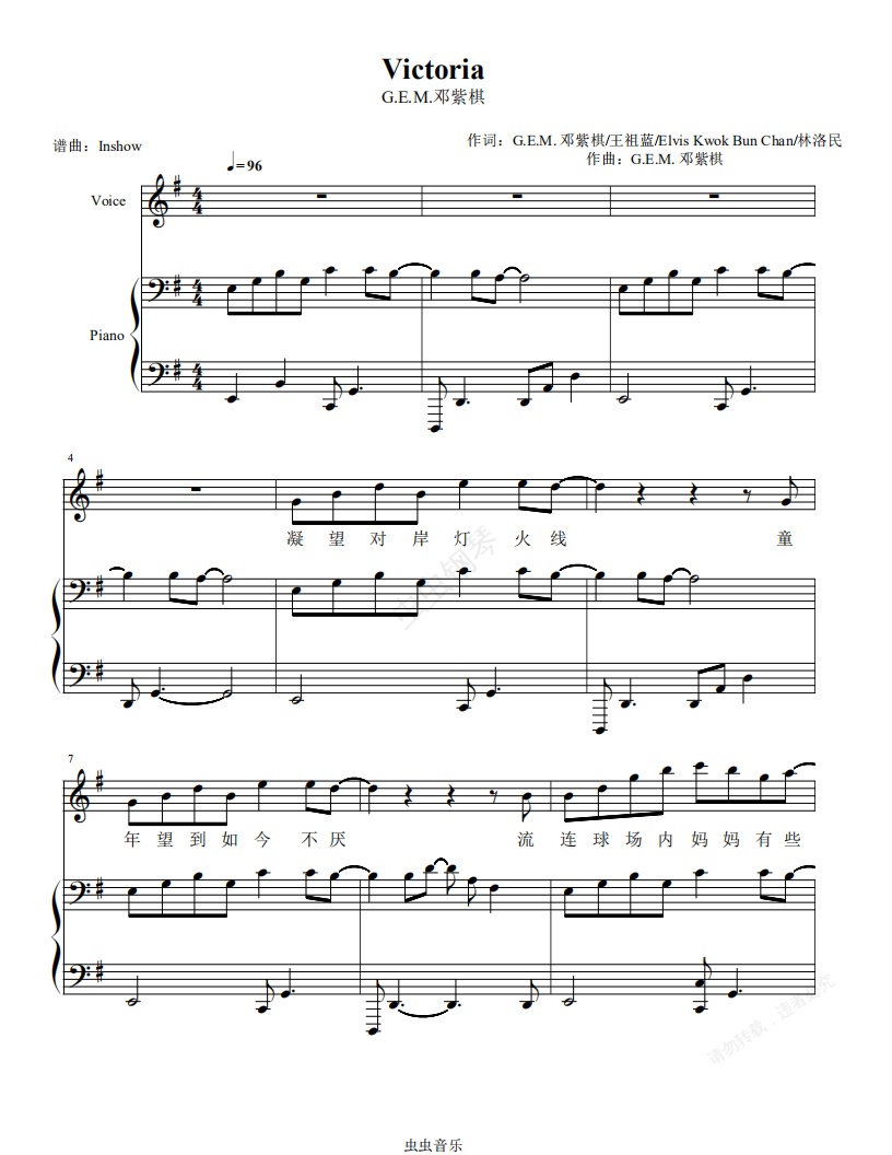 钢琴谱:G.E.M.邓紫棋 - Victoria【弹唱谱】