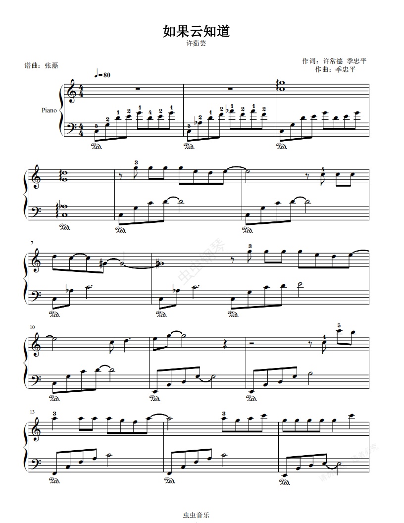 钢琴谱:如果云知道--许茹芸--C大调