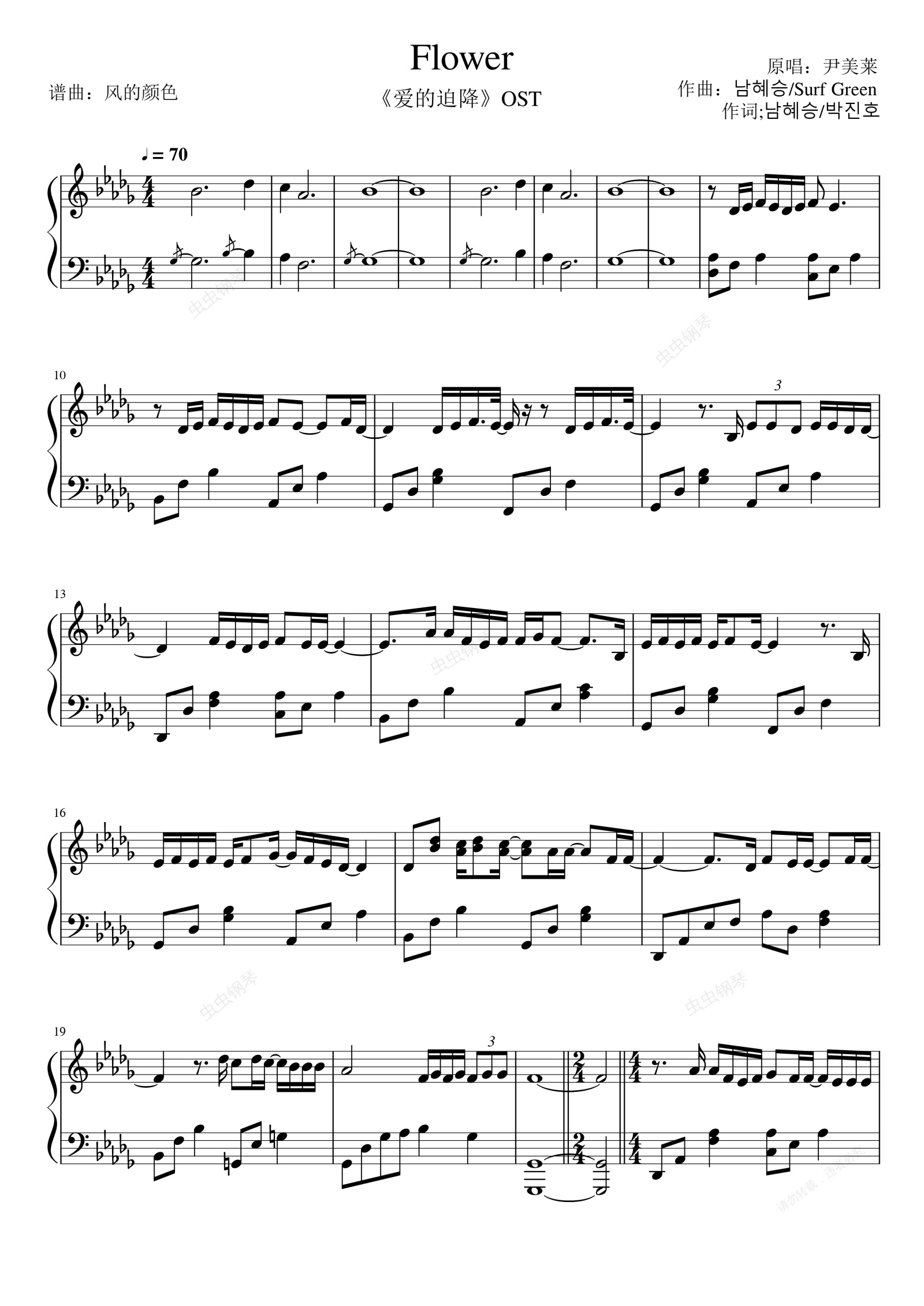钢琴谱:Flower(《爱的迫降》OST~浪漫抒情版)