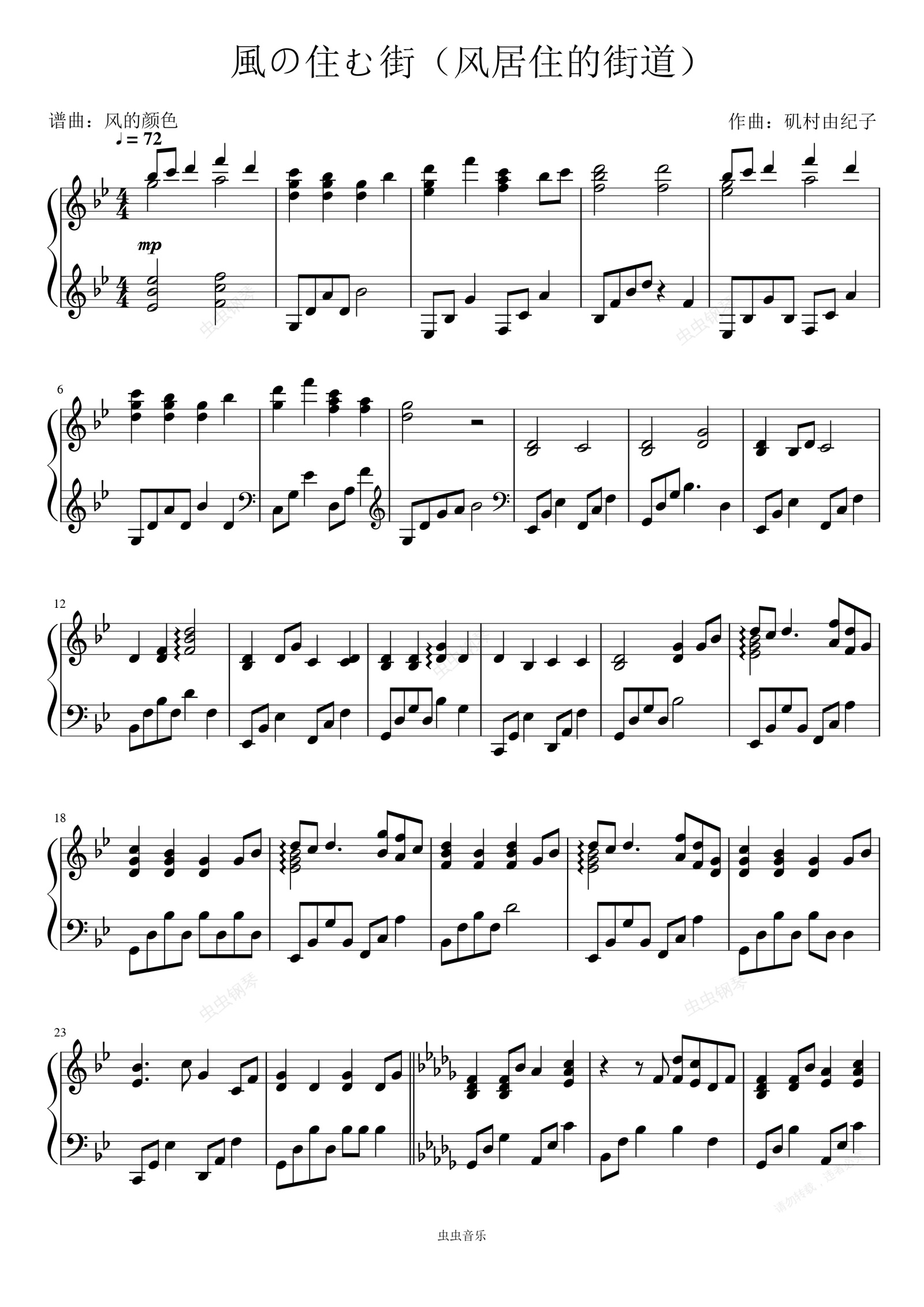 钢琴谱:風の住む街(《风居住的街道》钢琴版)