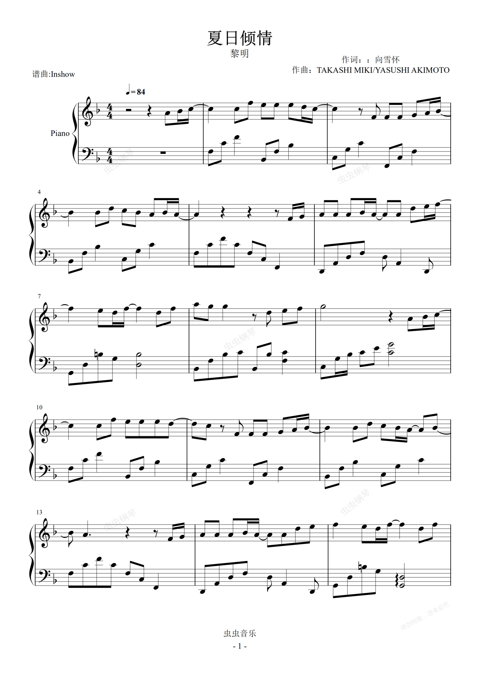 钢琴谱:卫兰 - 夏日倾情【独奏谱】