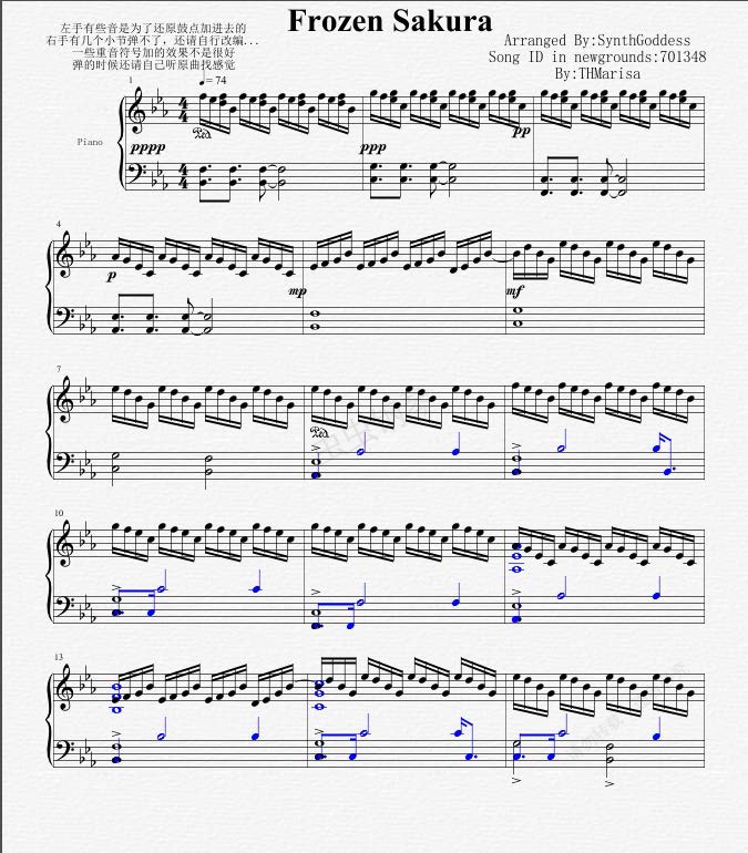 钢琴谱:Frozen Sakura By:SynthGoddess
