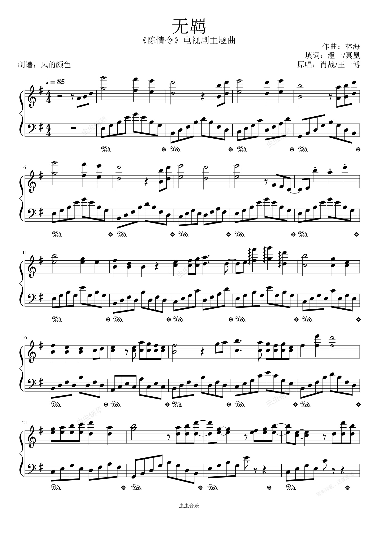钢琴谱:《无羁》陈情令OST~钢琴演奏版