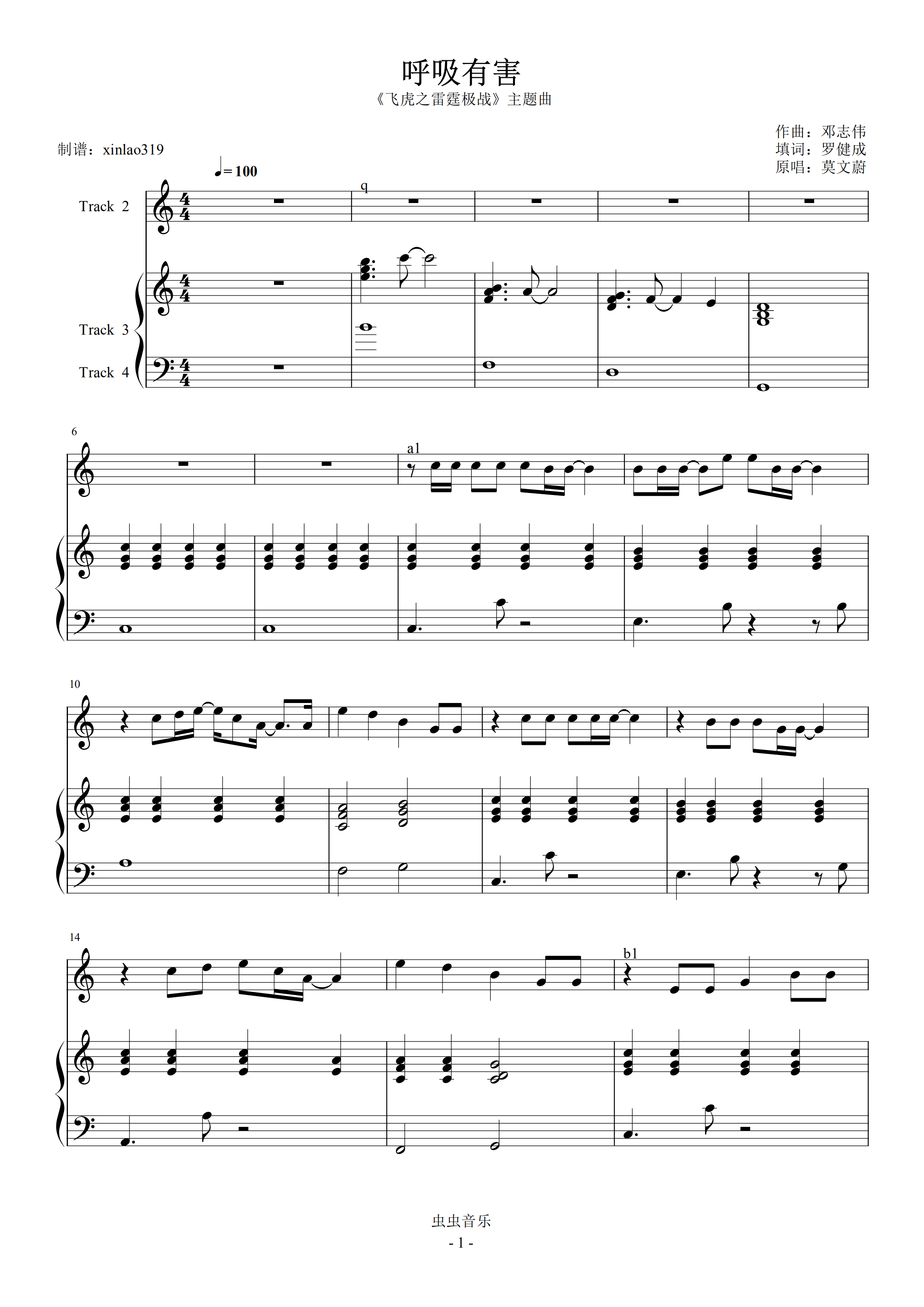钢琴谱:呼吸有害-弹唱版(原声钢琴扒谱)《飞虎之雷霆极战》主题曲