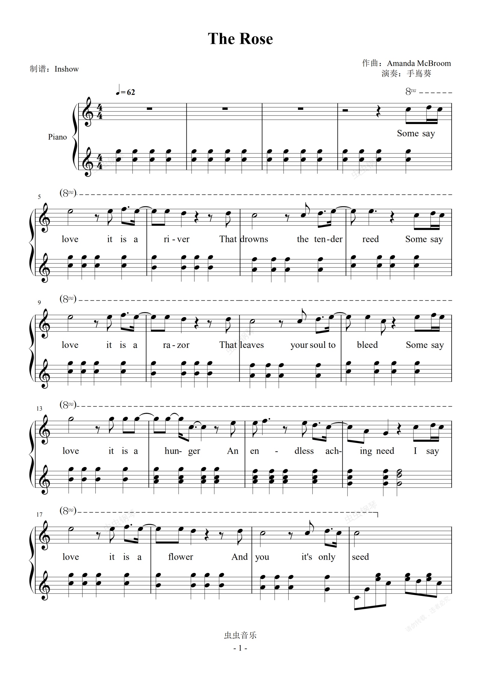 钢琴谱:手嶌葵 - The Rose【独奏谱】