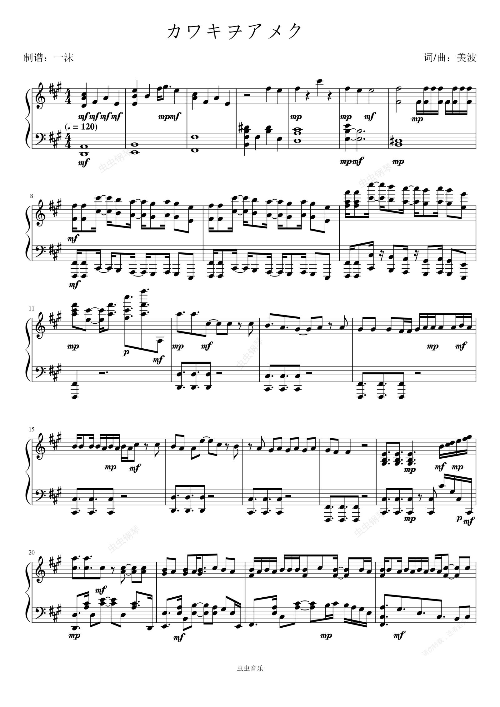 钢琴谱:家有女友OP カワキヲアメク 完整版 华丽独奏